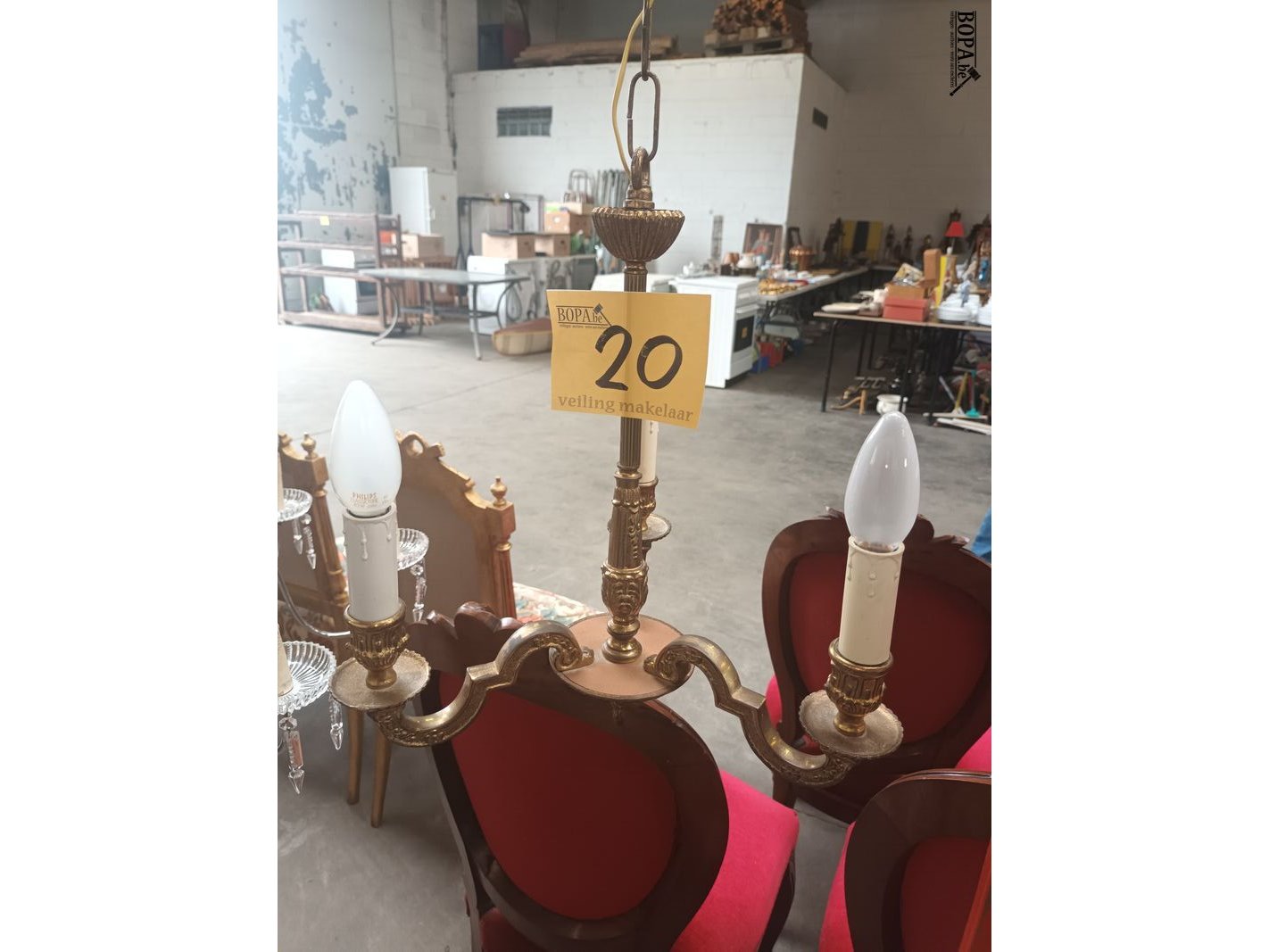 Luster in koper. Diameter 33 cm. Hoogte 60 cm.