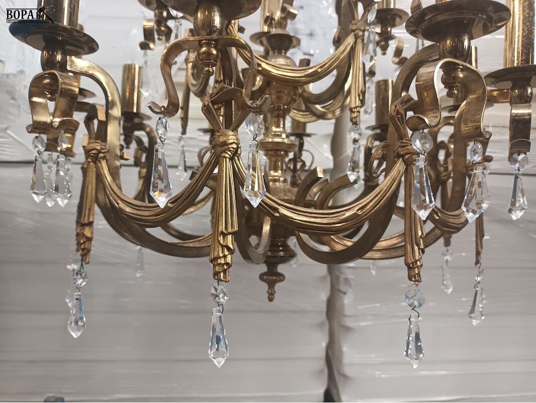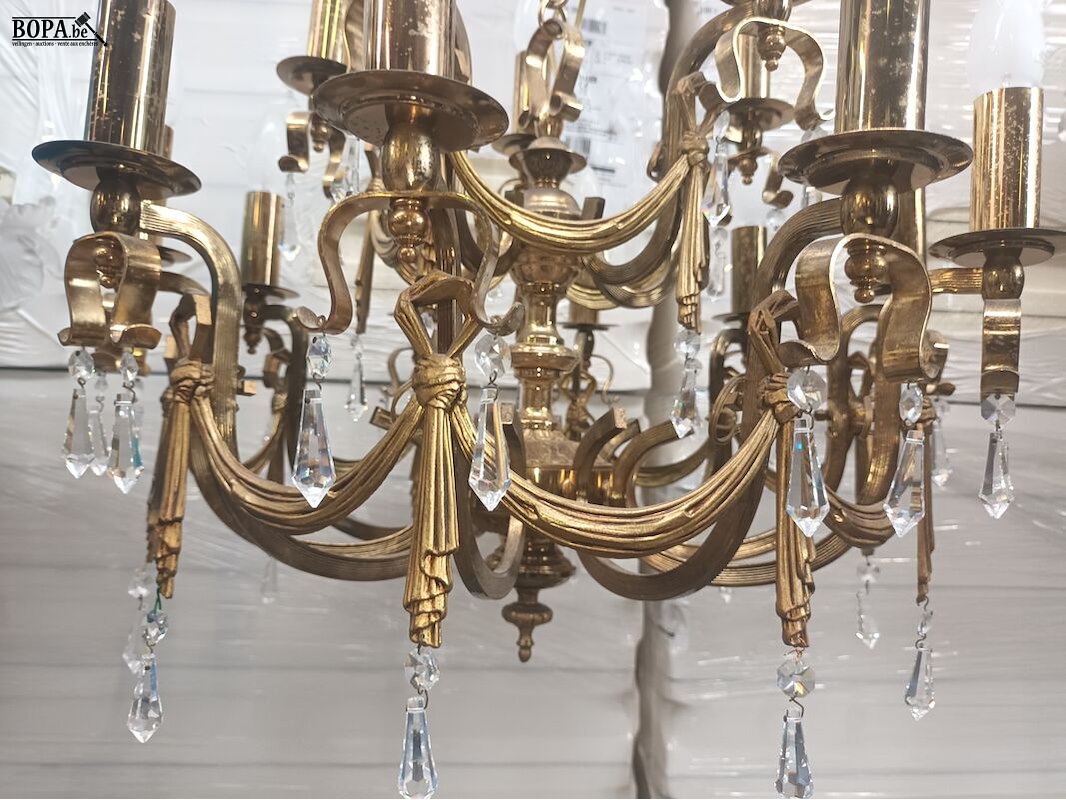 Luster koper met kristallen. Diameter 56 cm. Hoogte 105 cm.