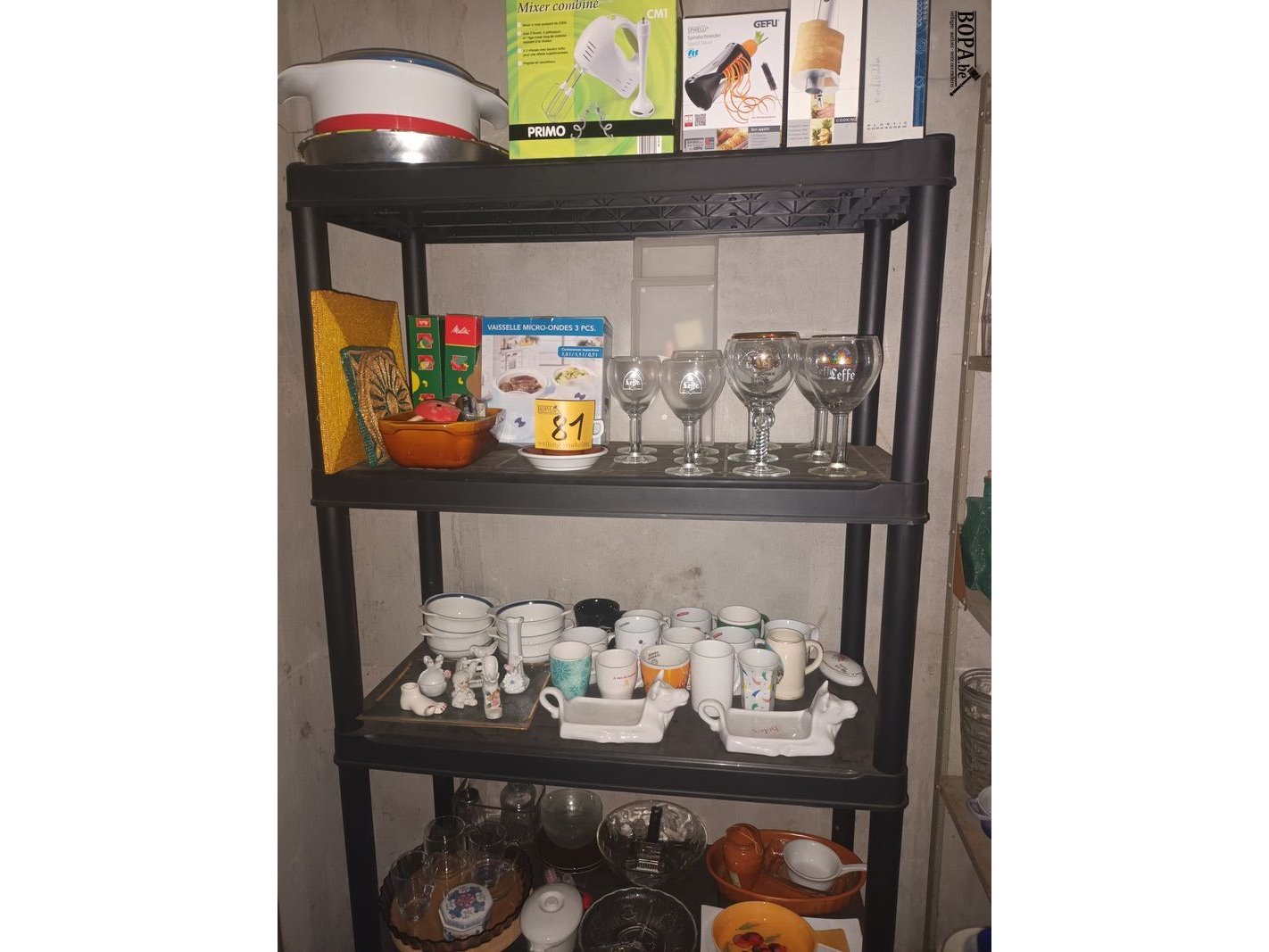 Lot 81 - keukengerei en huisraad. inhoud rek