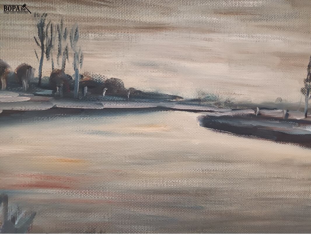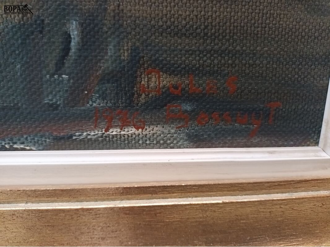 Schilderij rivier getekend Jules Bossuyt 1976. 55 x 56 cm.
