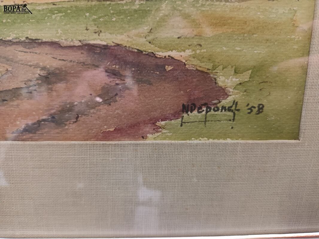 Kader met landschap getekend N. Depond 58. 58 x 48 cm.