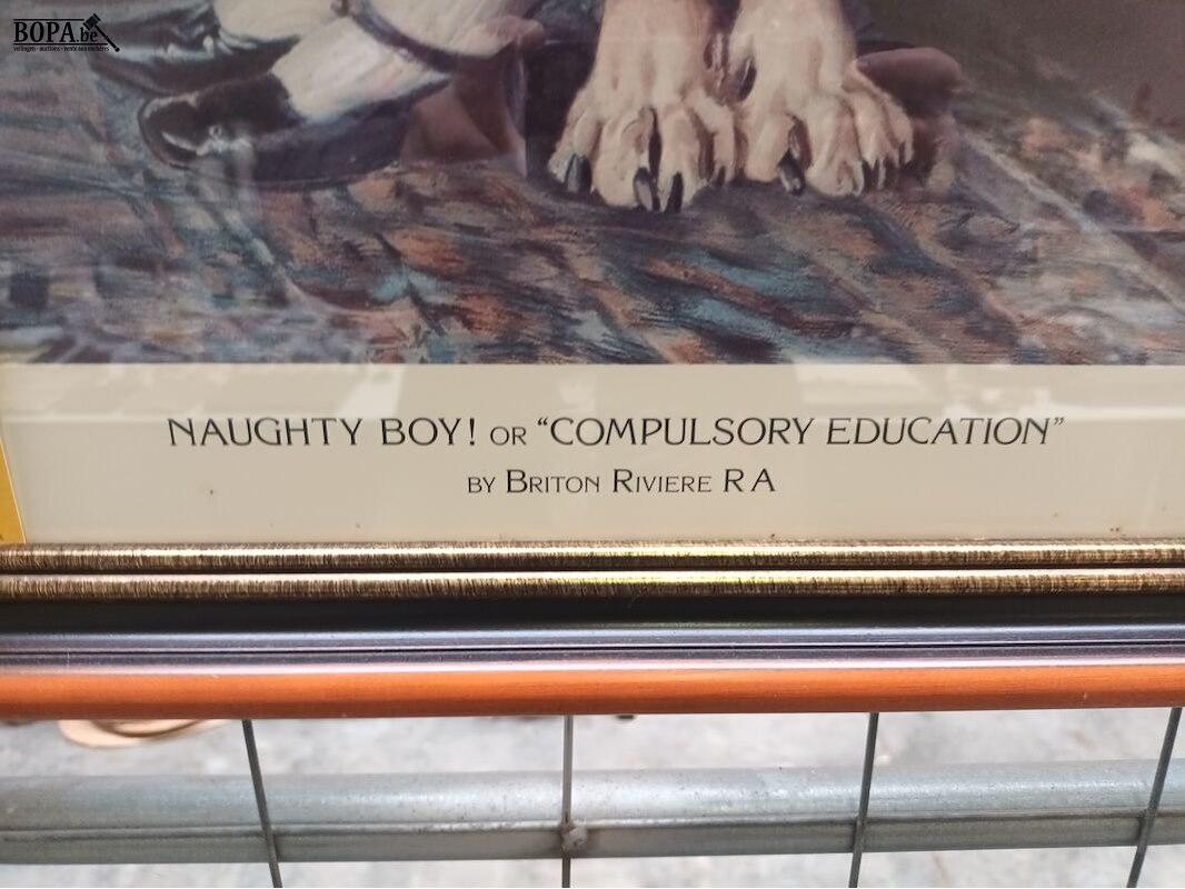 Kader kind met hond. Naughty boy. 63 x 78 cm.