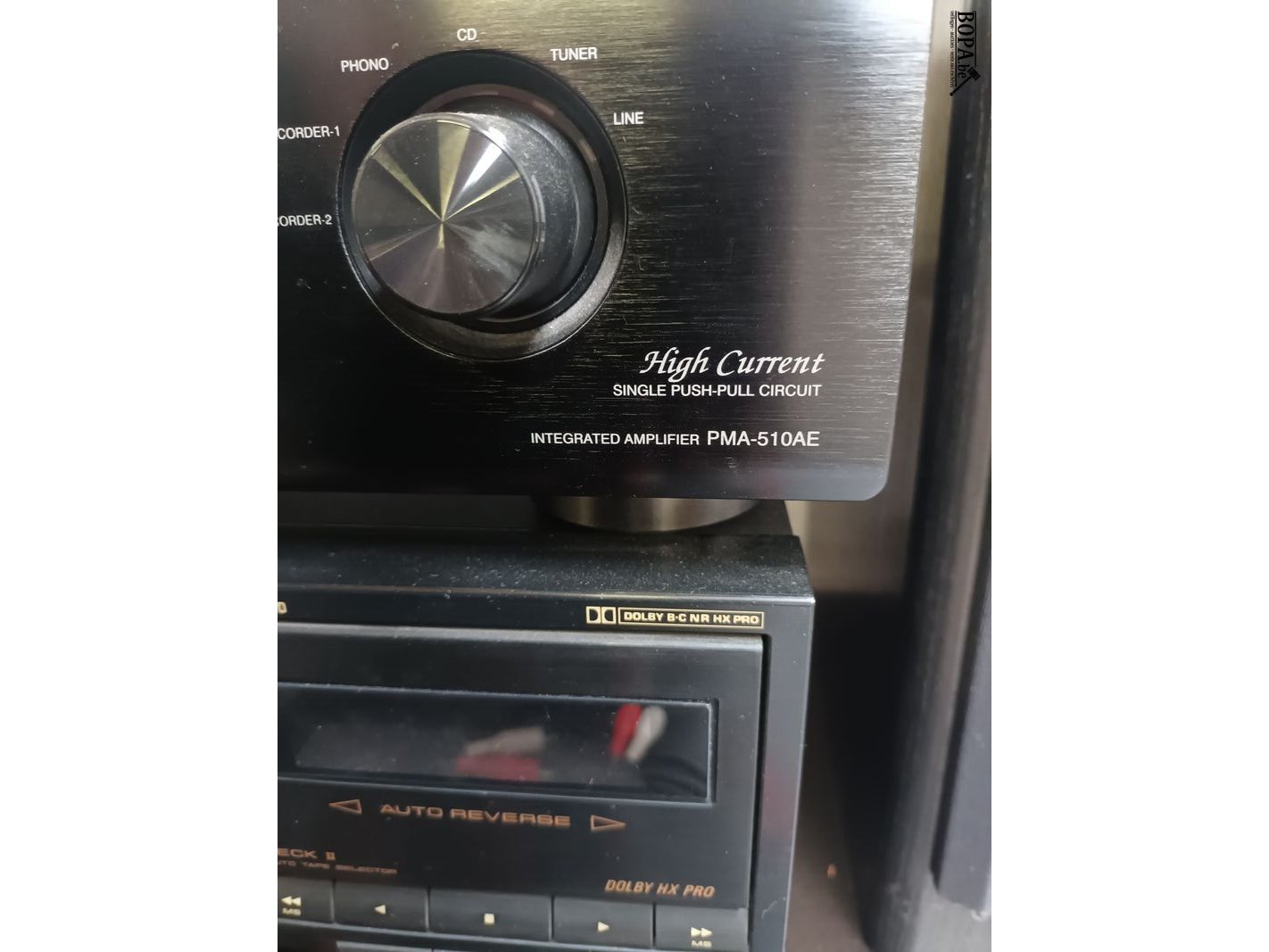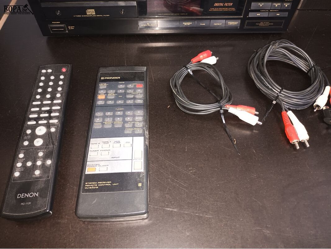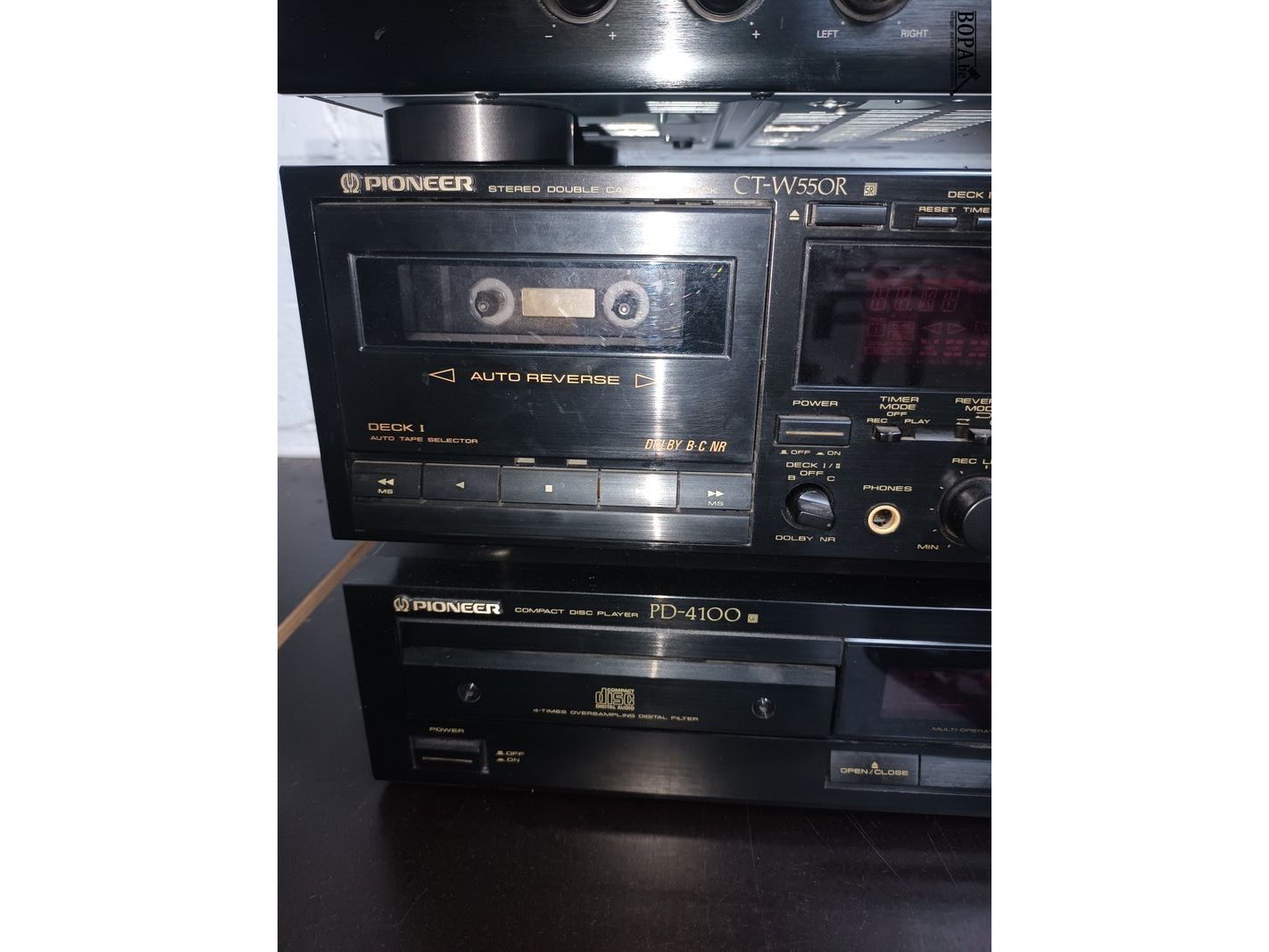 Muziekinstallatie bestaande uit Denon integrated amplifier PMA-510AE, Pioneer stereo cassette deck CT-W550R en Pioneer cd speler PD-4100.