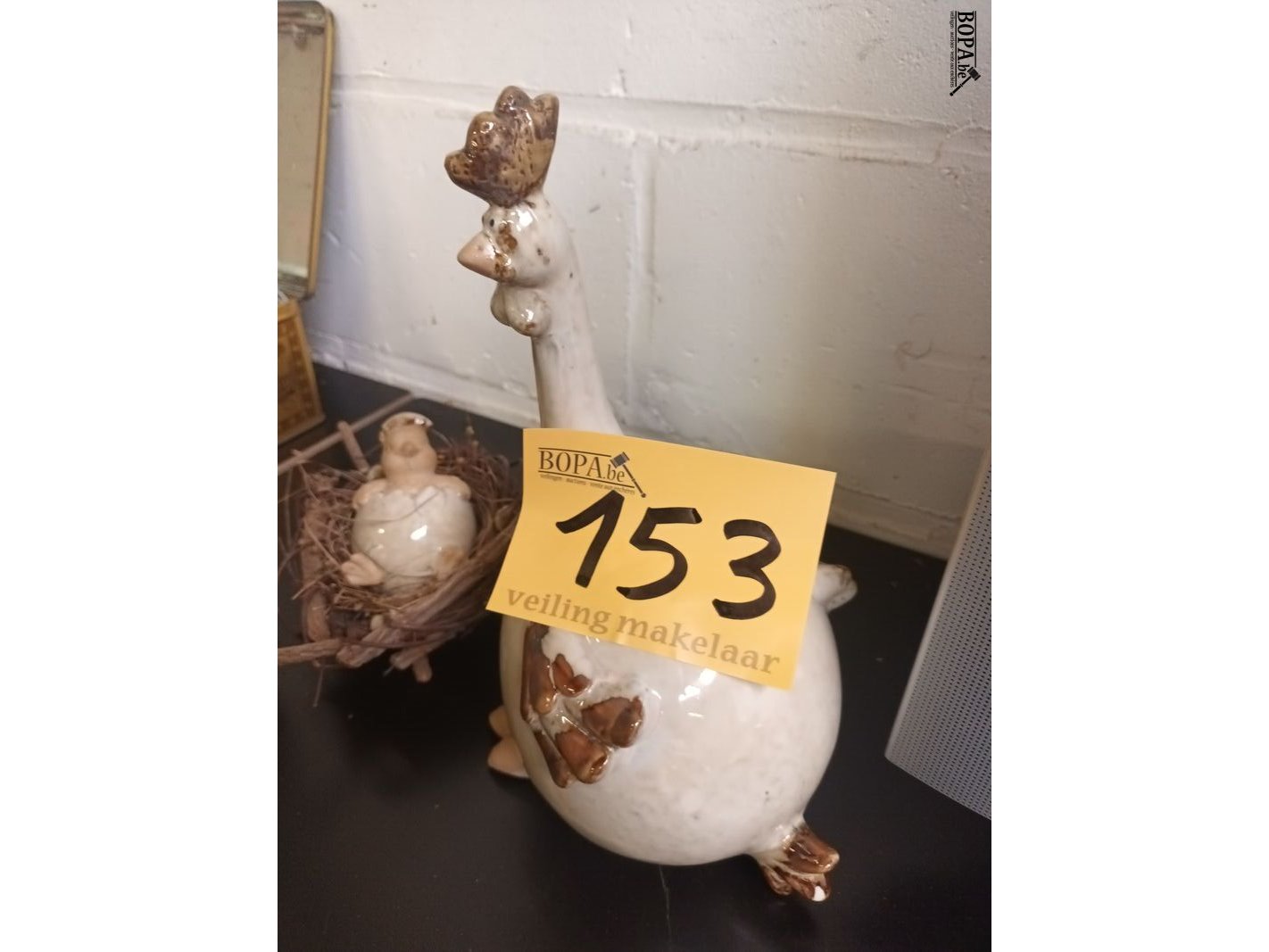 Lot 153 - beeldjes kippen met kuiken. 3 stuks