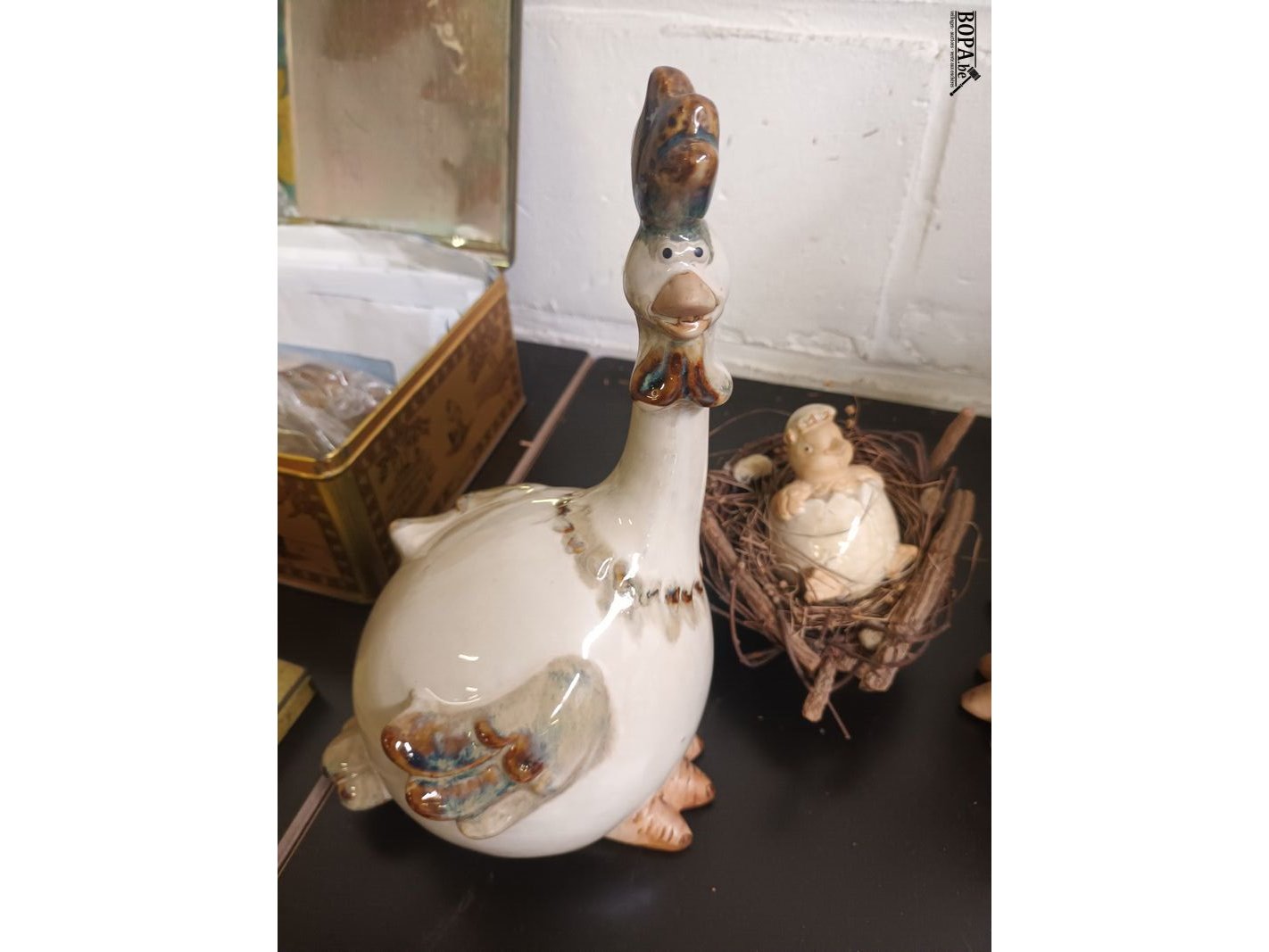 Beeldjes kippen met kuiken. 3 stuks. Hoogte 28 cm.