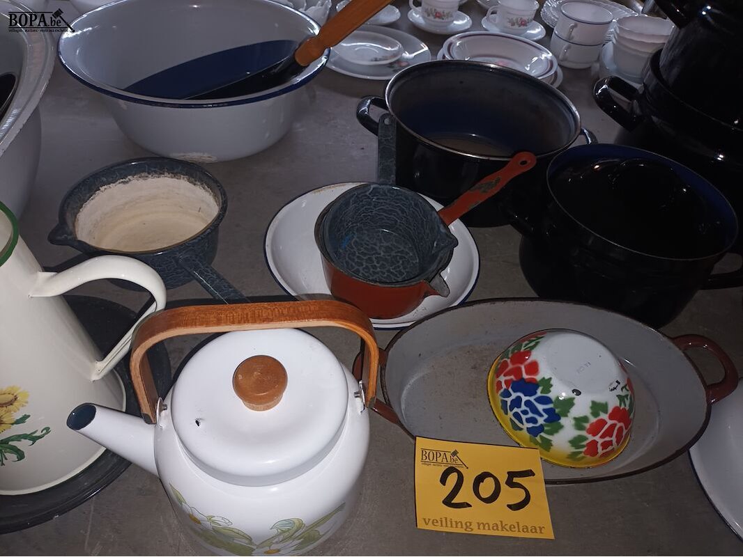 Lot 205 - brocante emaille items. 26 stuks