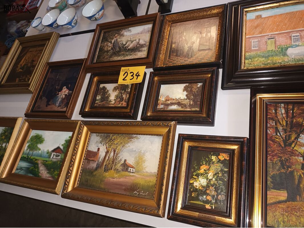Kaders en schilderijen. 12 stuks. 20 x 24 cm/31 x 41 cm.