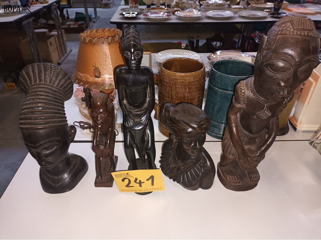 Afrikaanse beelden. 5 stuks. Hoogte van 22 cm tot 39 cm.