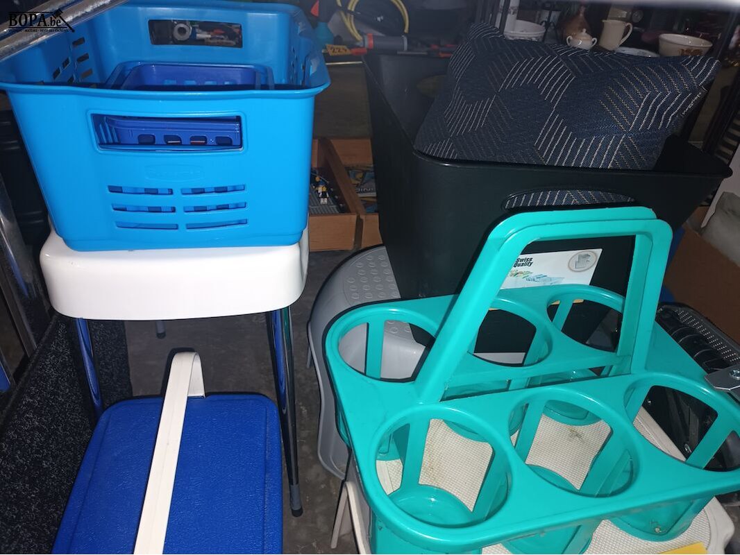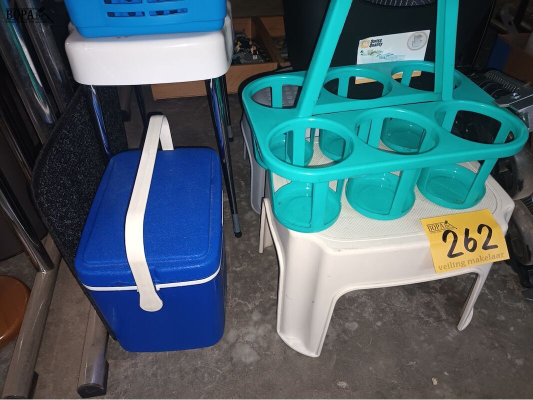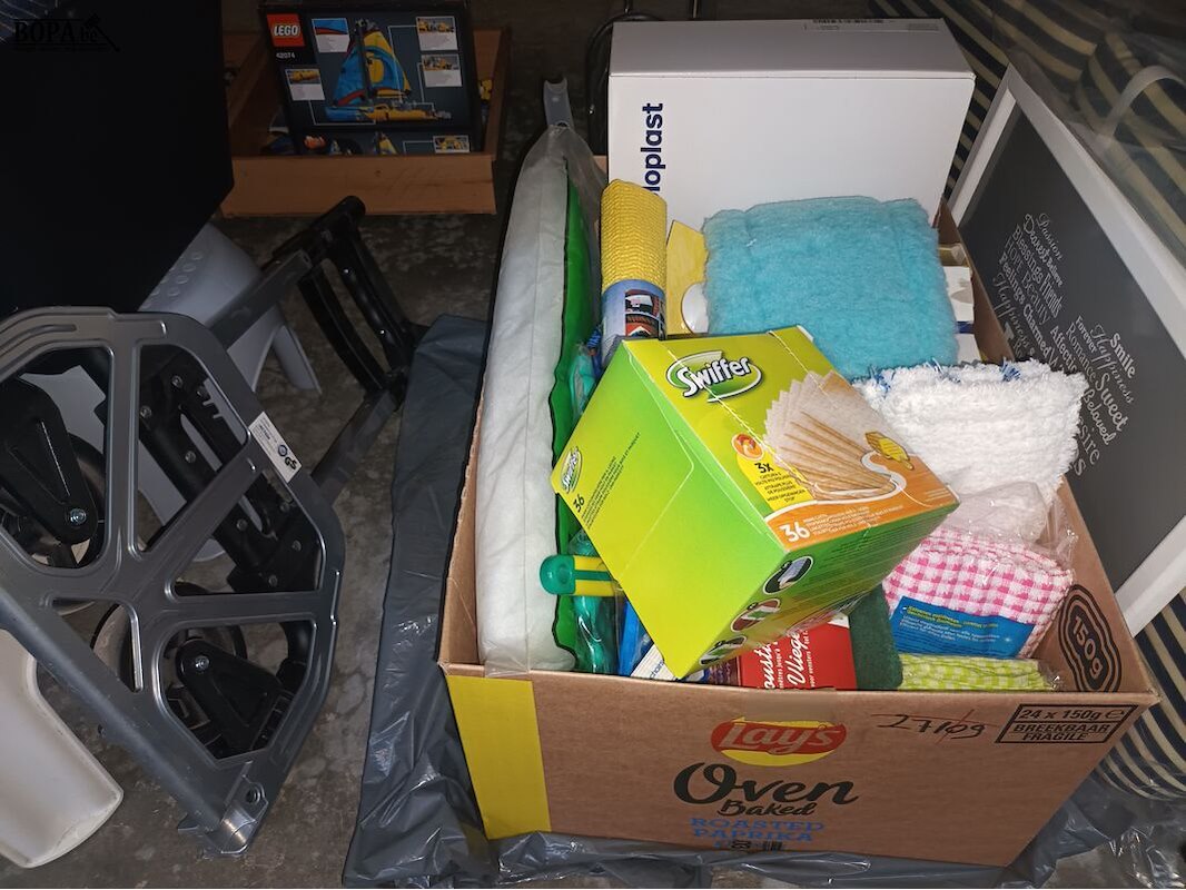 Poetsmateriaal en huisraad. 12 stuks + 1 doos.