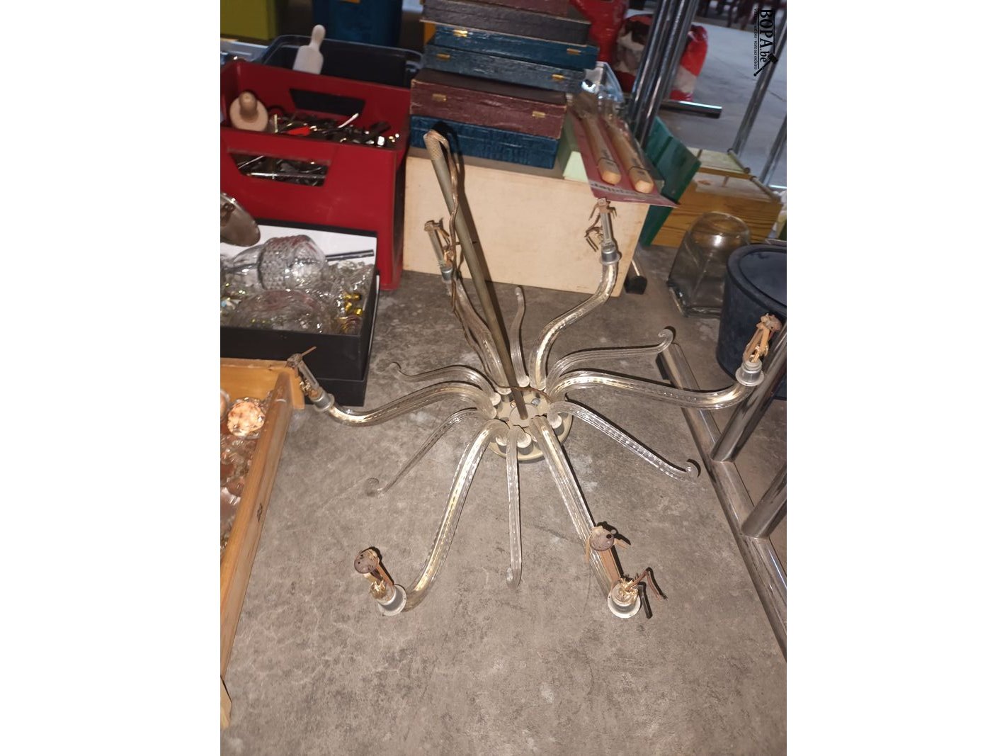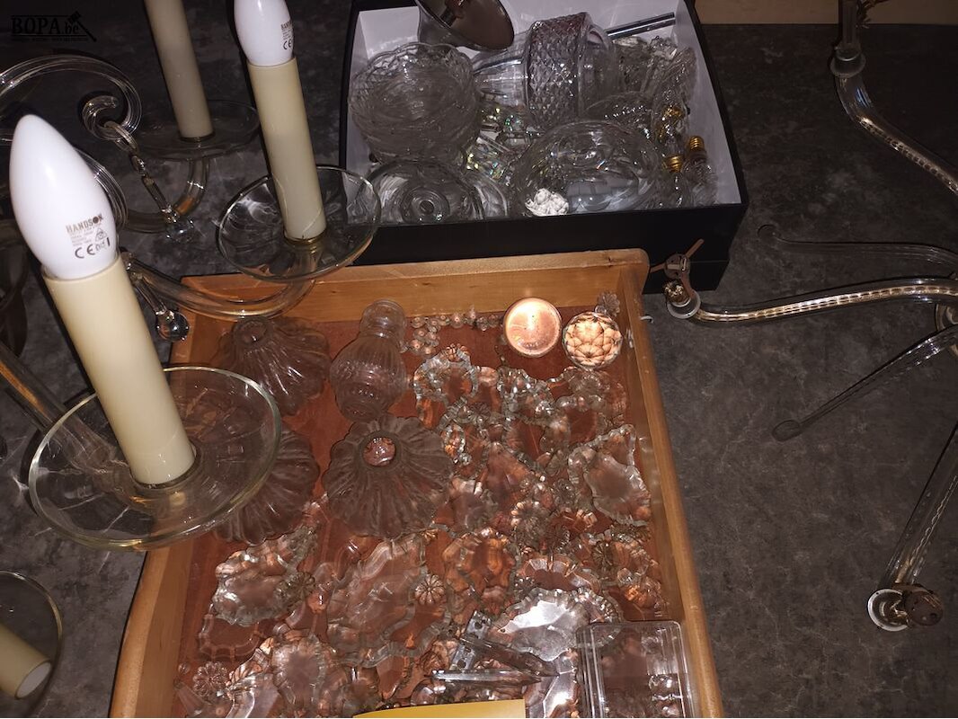 2 lusters voor onderdelen + 2 bakken met onderdelen van lusters.