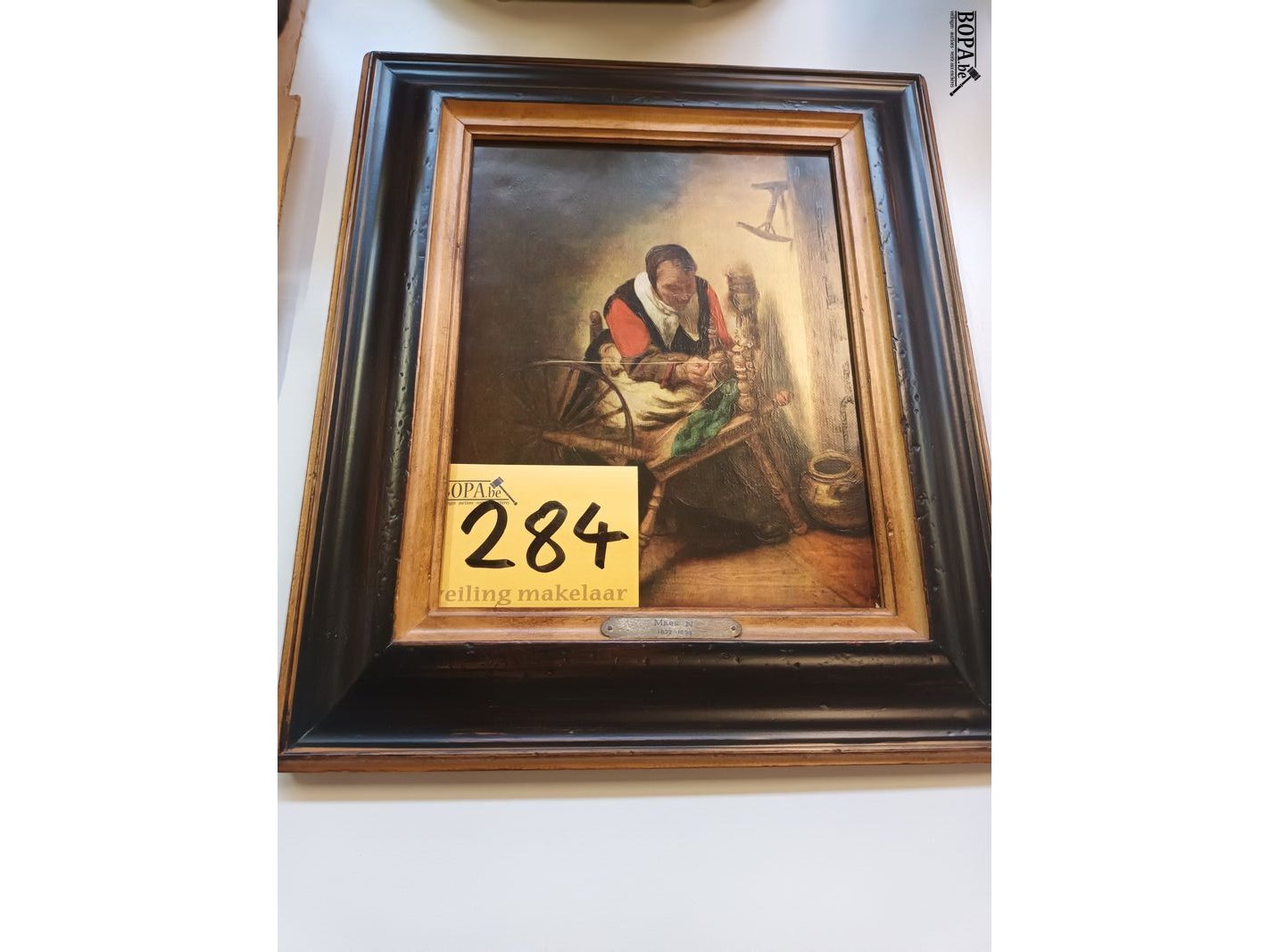 Schilderij reproductie. Maes N. 1632-1693. 37 x 42 cm.