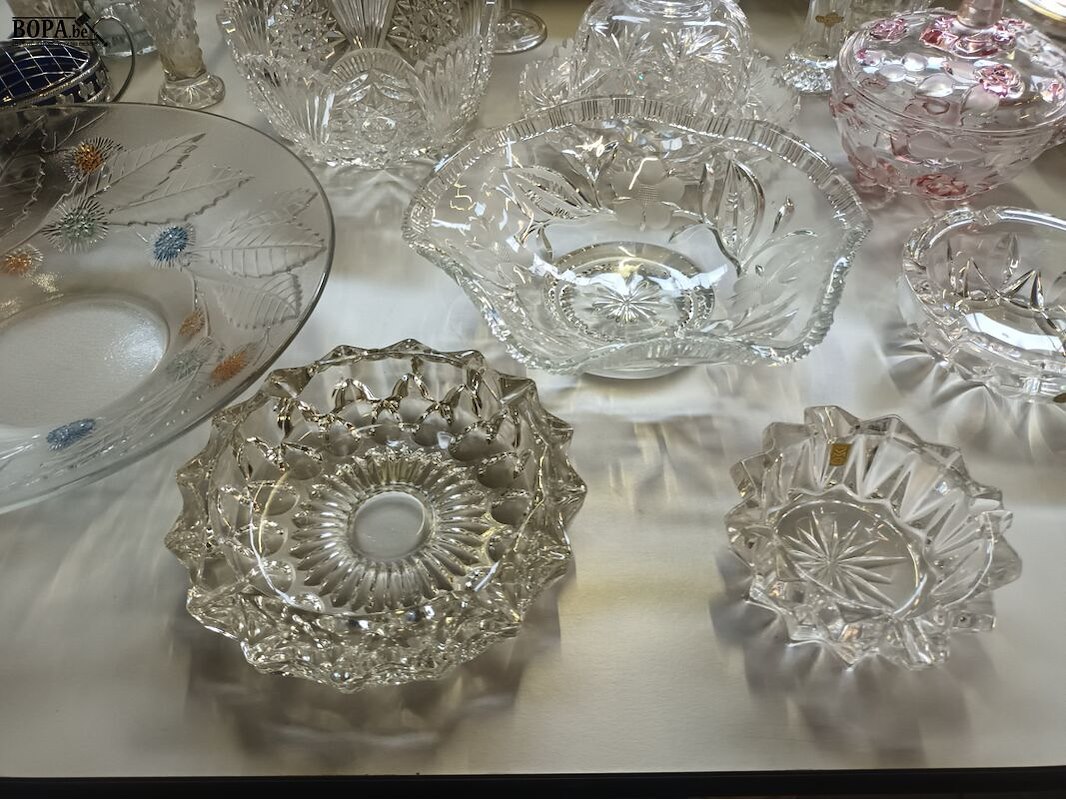Glaswerk en kristal. 30 stuks. Schalen, vazen, asbak.