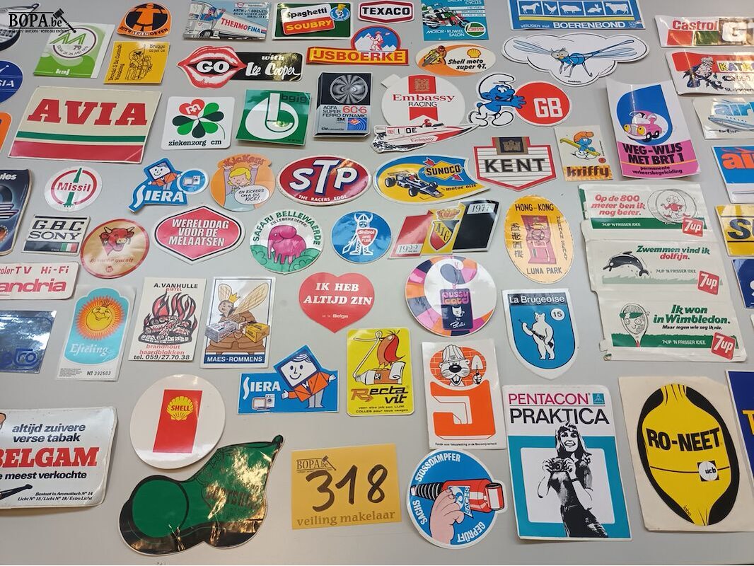 Lot 318 - reclame stickers. 80 stuks