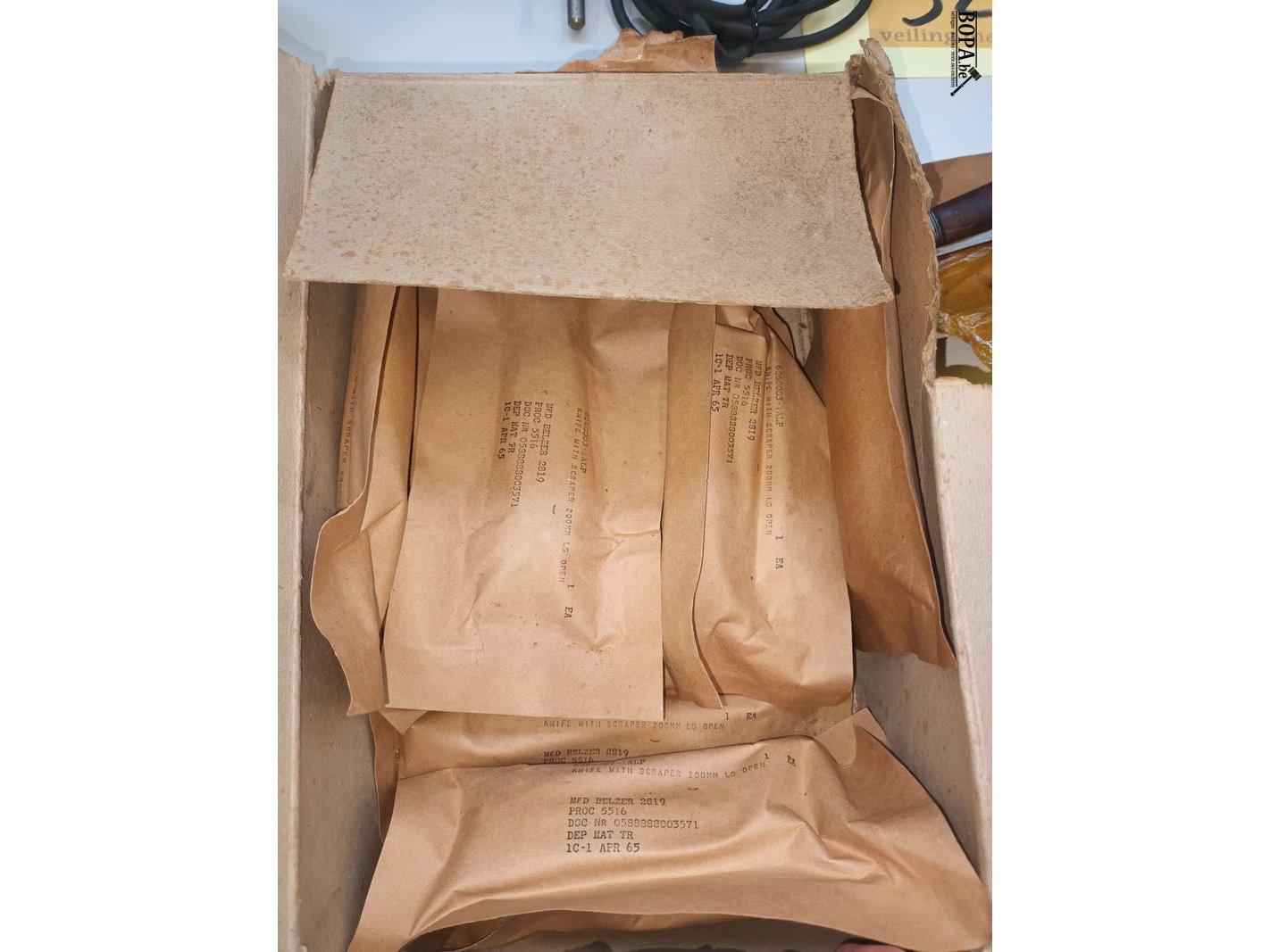 Militaire zakmessen. 13 stuks waarvan 12 nog in gesloten verpakking en in originele doos.