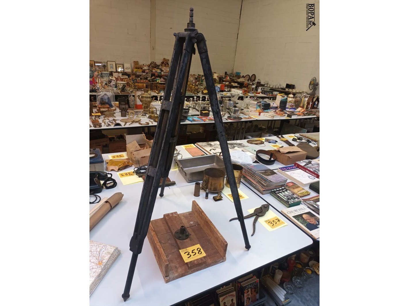 Statief met bijhorende houten plaat. Hoogte 106 cm.