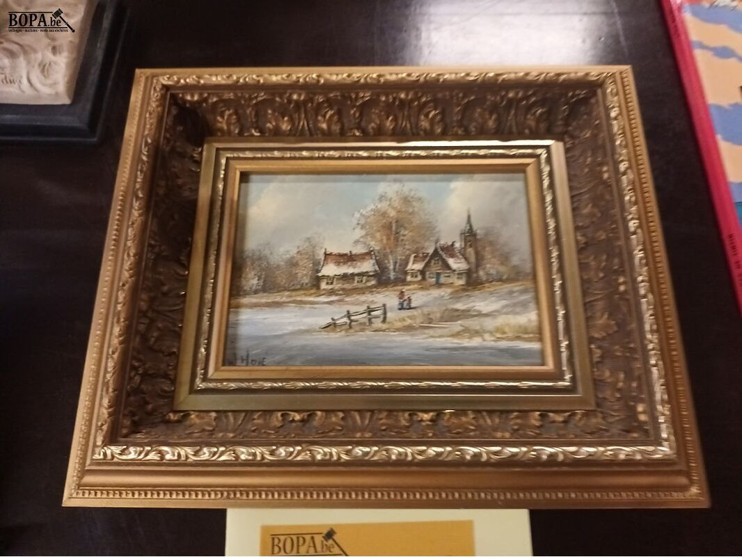 Schilderij in vergulde lijst. 2 stuks. 30 x 25 cm.