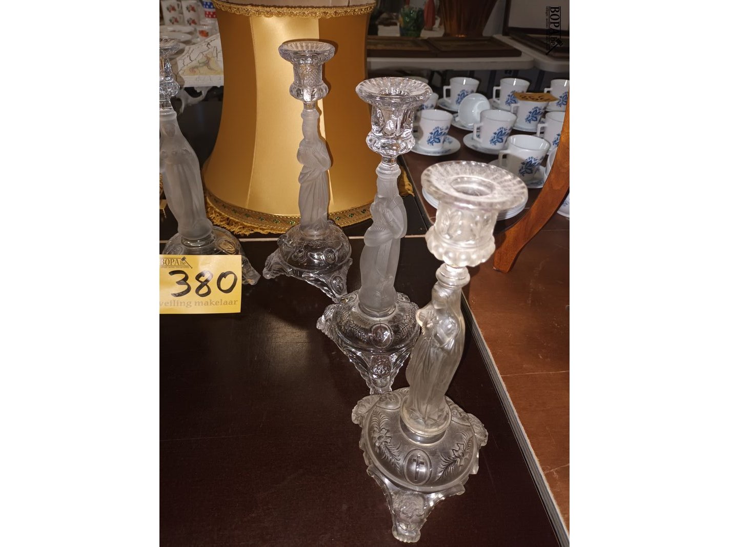 Kandelaars in glas. 6 stuks waarvan 4 stuks getekend Val Saint Lambert.