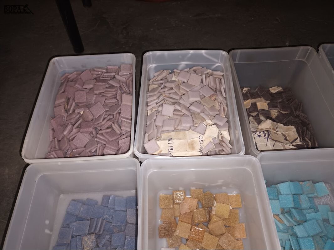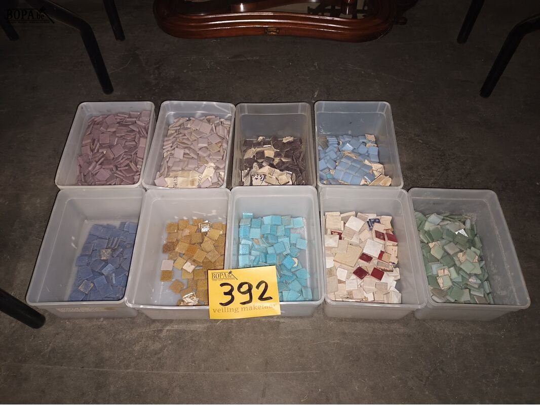 Steentjes voor mozaïek. 9 dozen + inhoud.