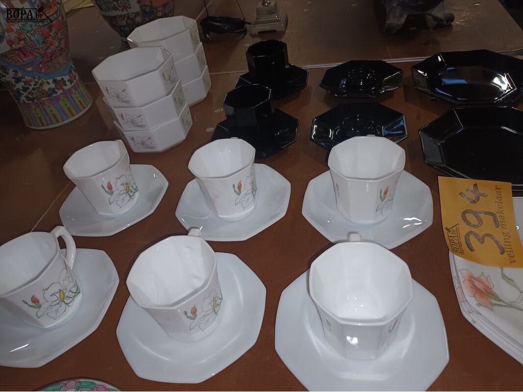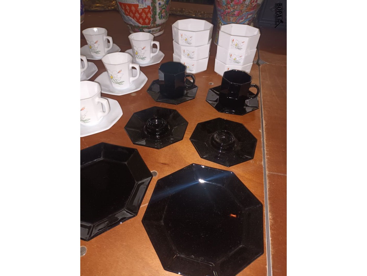 Servies Arcopal Octime. 32 stuks. Wit en zwart.