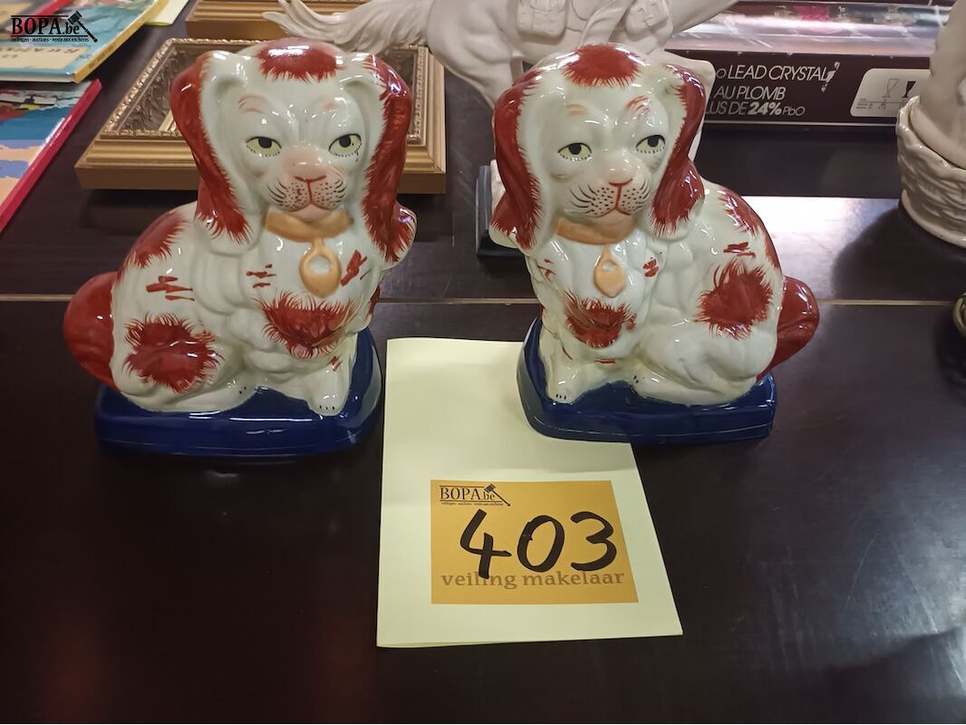 Beelden hondjes. 2 stuks. Hoogte 22 cm.