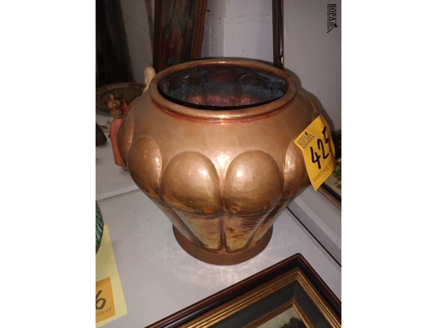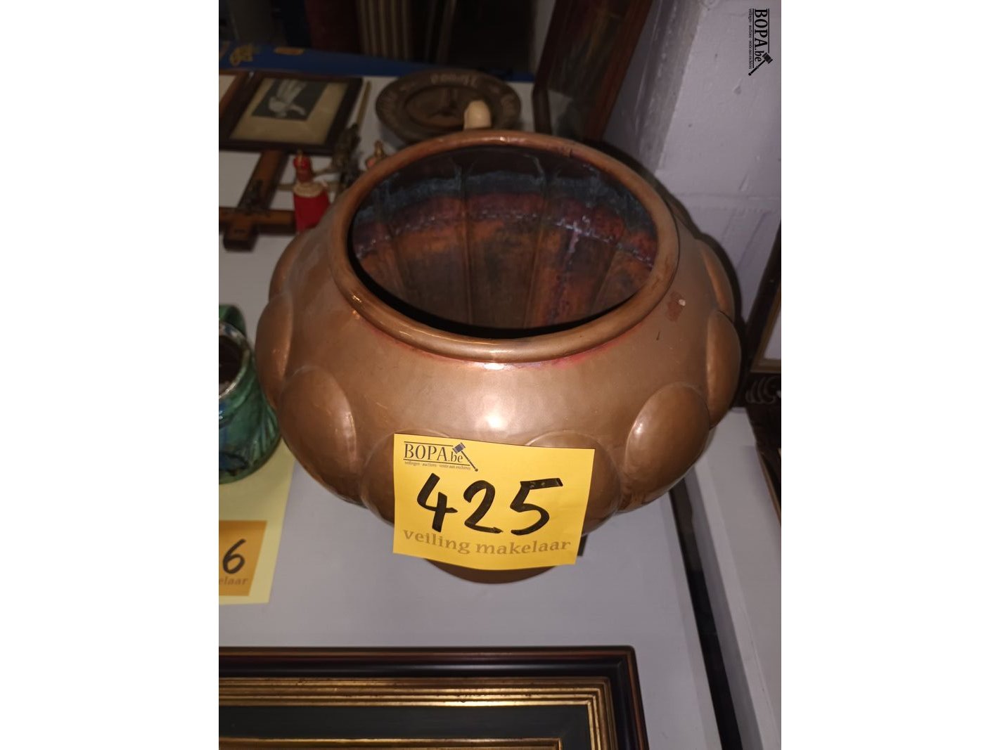 Bloempot in koper. Diameter 34 cm. Hoogte 33 cm.