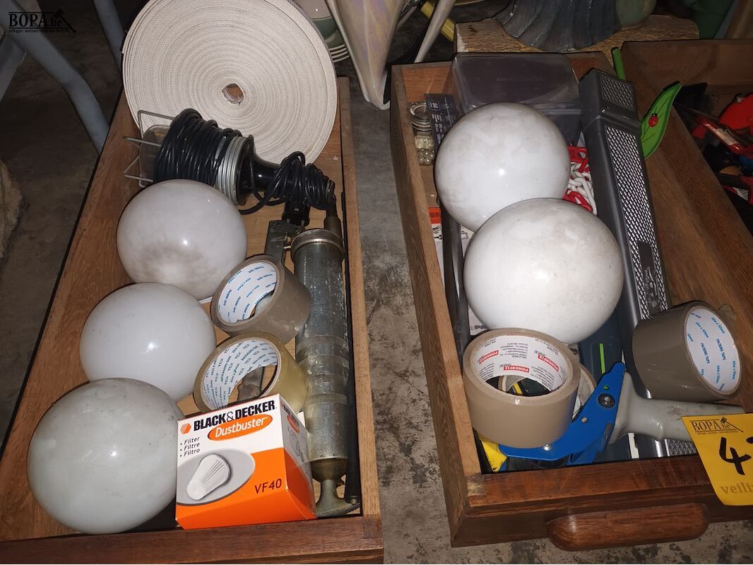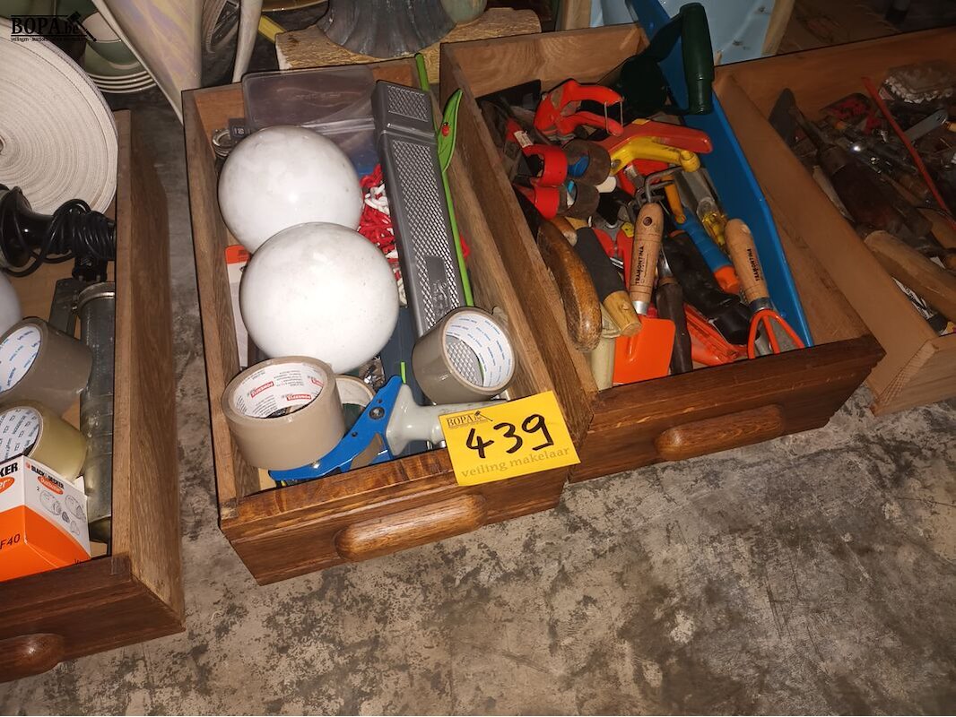 Gereedschap en doe-het-zelf. 4 bakken met inhoud.