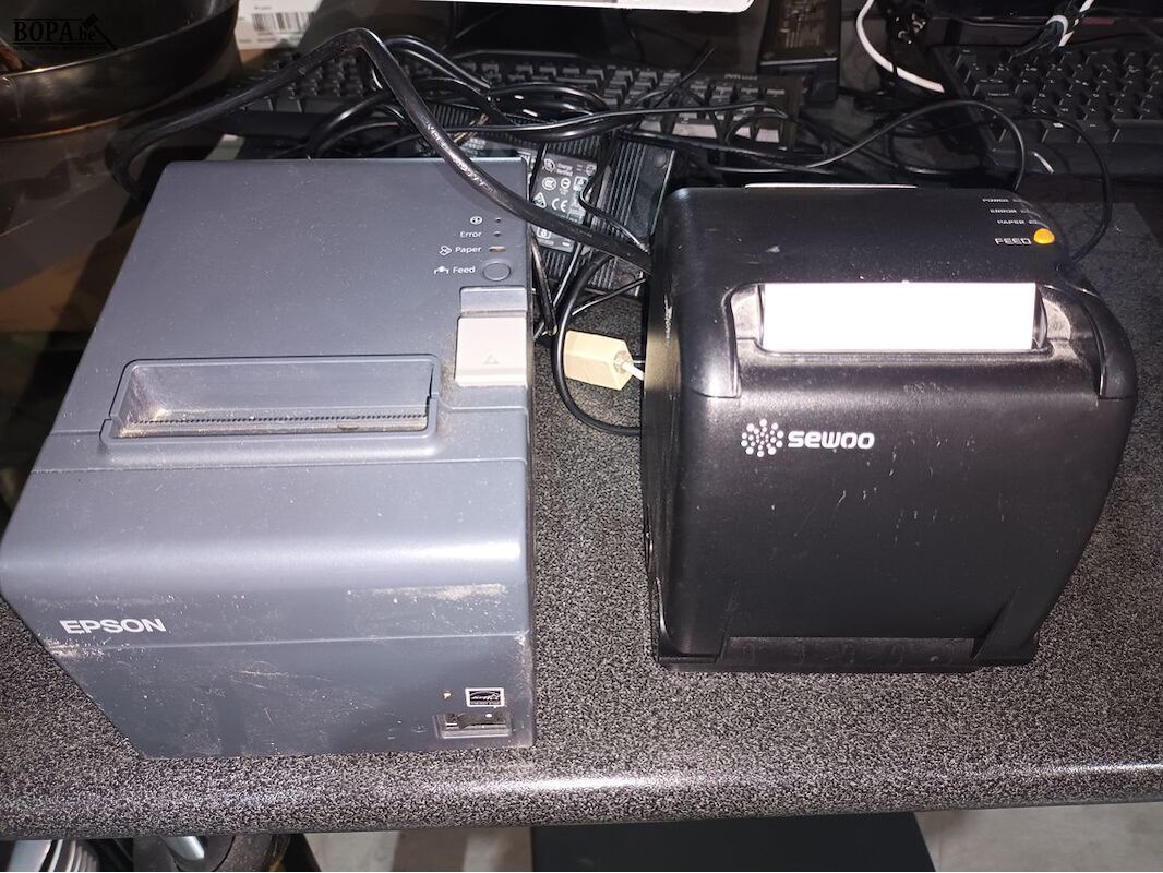 Kassasysteem met toetsenbord en 2 ticket printers.
