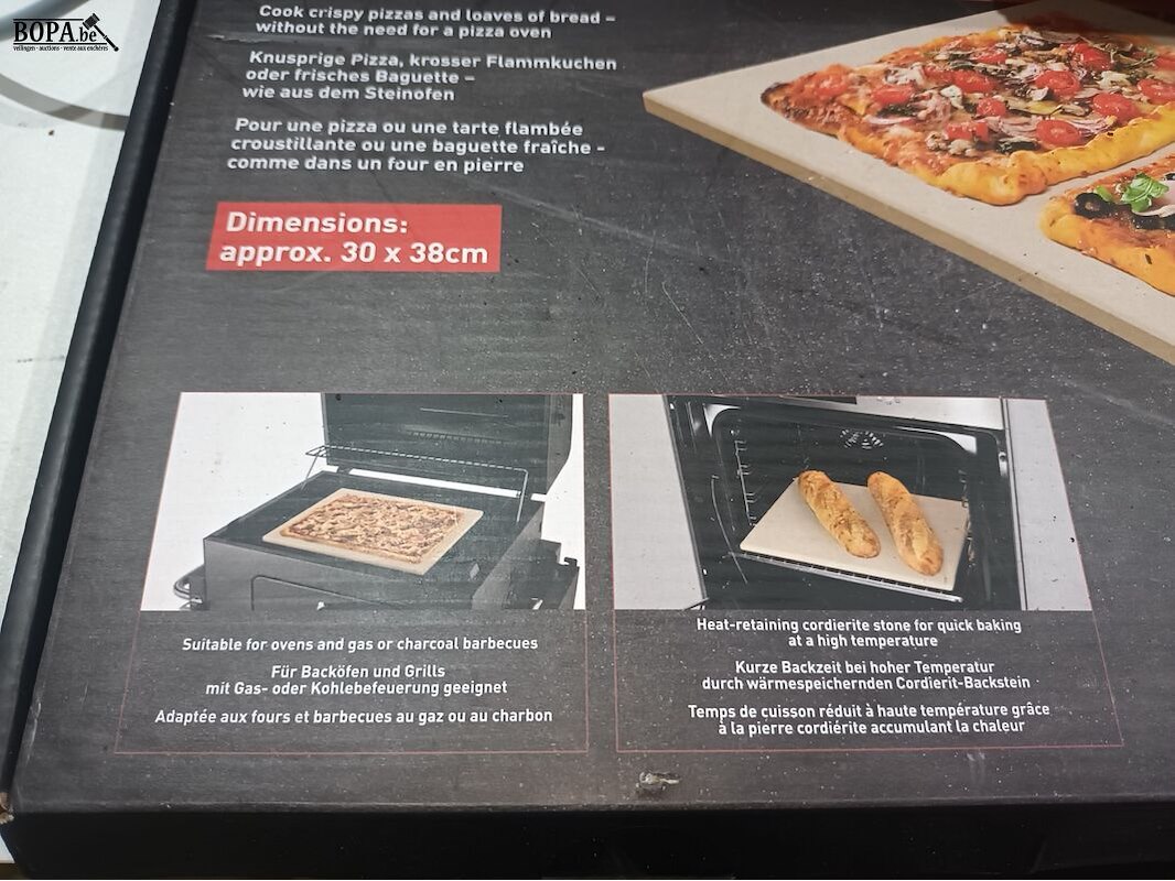 2 pizza stenen van 30 x 38 cm en 12 leistenen voor hapjes.