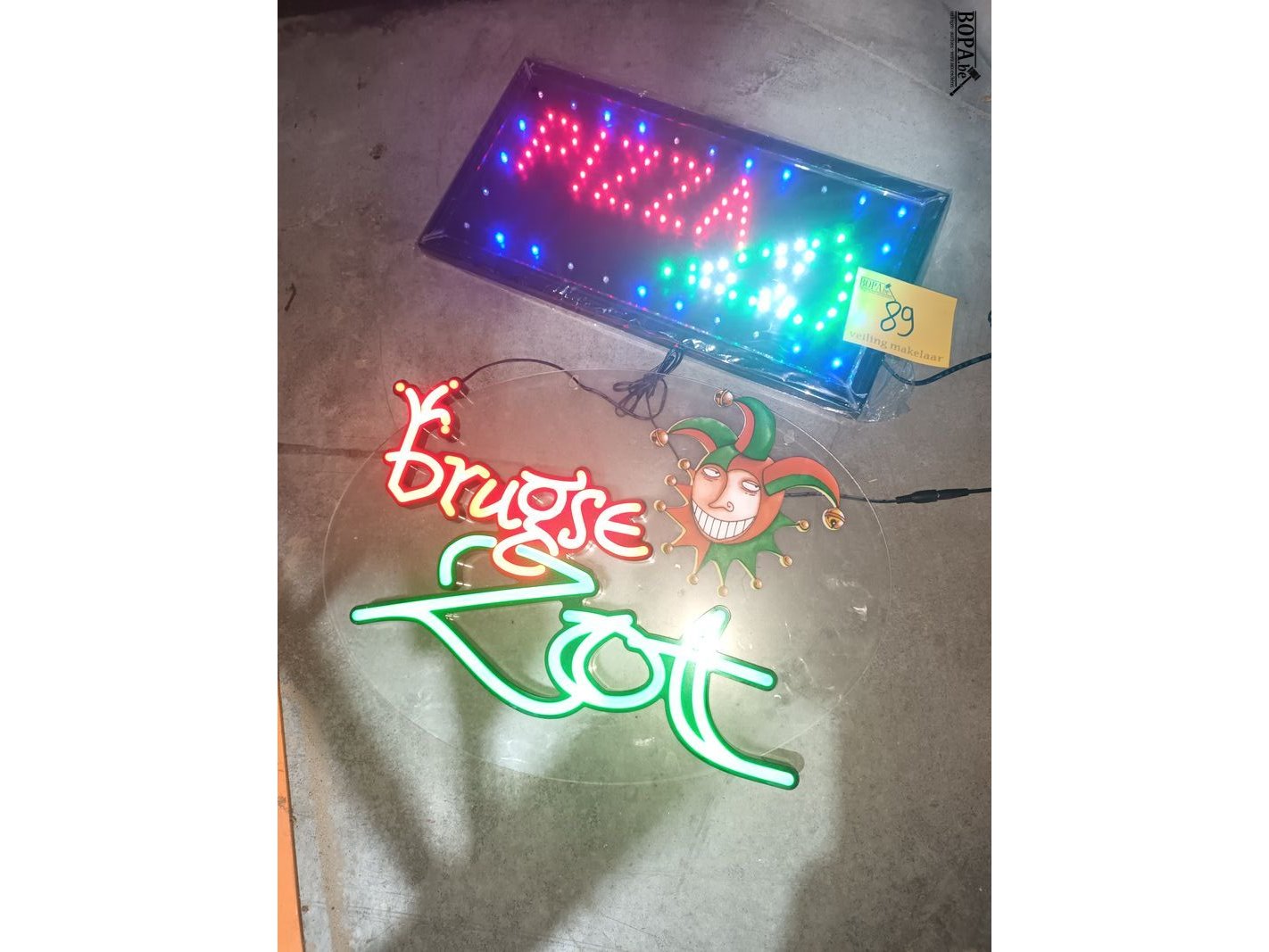 Licht reclame borden. 2 stuks. Brugse Zot en Pizza.