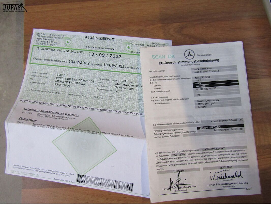 Merk MERCEDES Model GL320 CDI Datum eerste inschrijving 13/09/2006 KM stand 41786 KM Chassisnummer WDC1648221A155104 Brandstof Diesel Kleur Grijs Motorinhoud 2987 cm³ Motorvermogen 165 KW Milieuklasse *** Euro Schakeling Automaat Aantal sleutels 1 Inschrijvingsbewijs Aanwezig Gelijkvormigheidsattest Aanwezig Keuringsattest Aanwezig Opmerkingen Ophanging: schokdempers: staat Bijzonderheden / schade / opties Rijdende staat mits nieuwe batterij! Staat reeds een tijdje stil Normale gebruiksporen Centrale vergrendeling Alu velgen Dakrails Zwart lederen interieur Elektrische ramen en buitenspiegels Airco Houtlook afwerking Navigatie