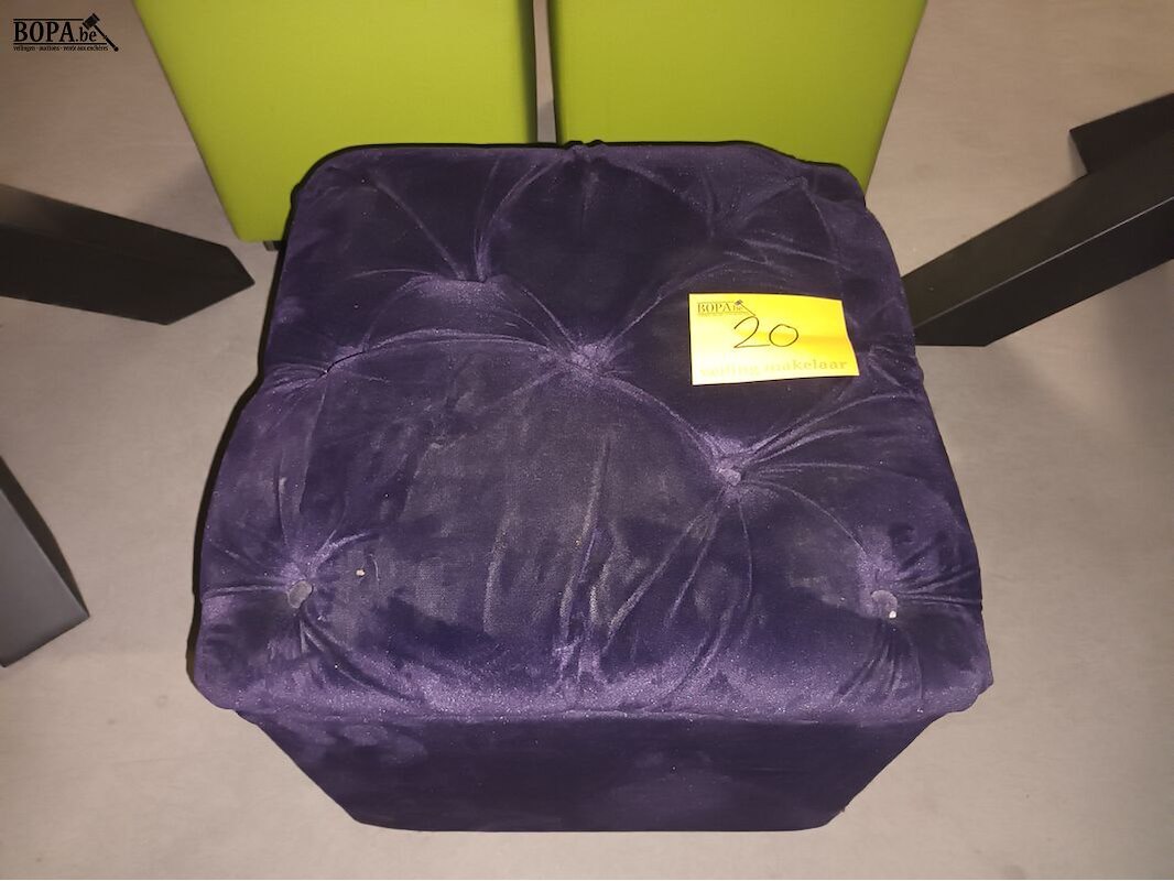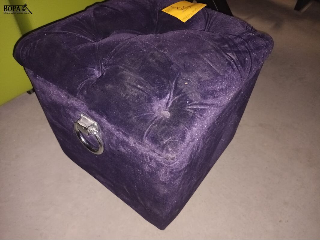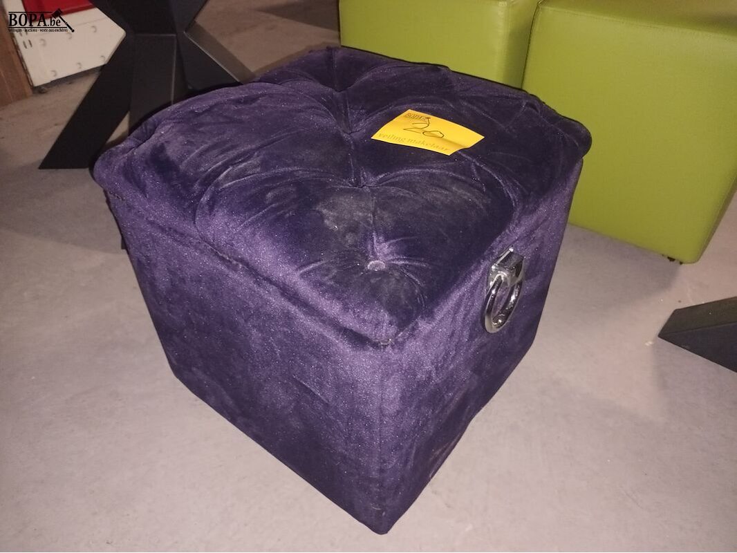 Paarse zitkubus met 2 handgrepen. 50 x 50 x 46 cm.