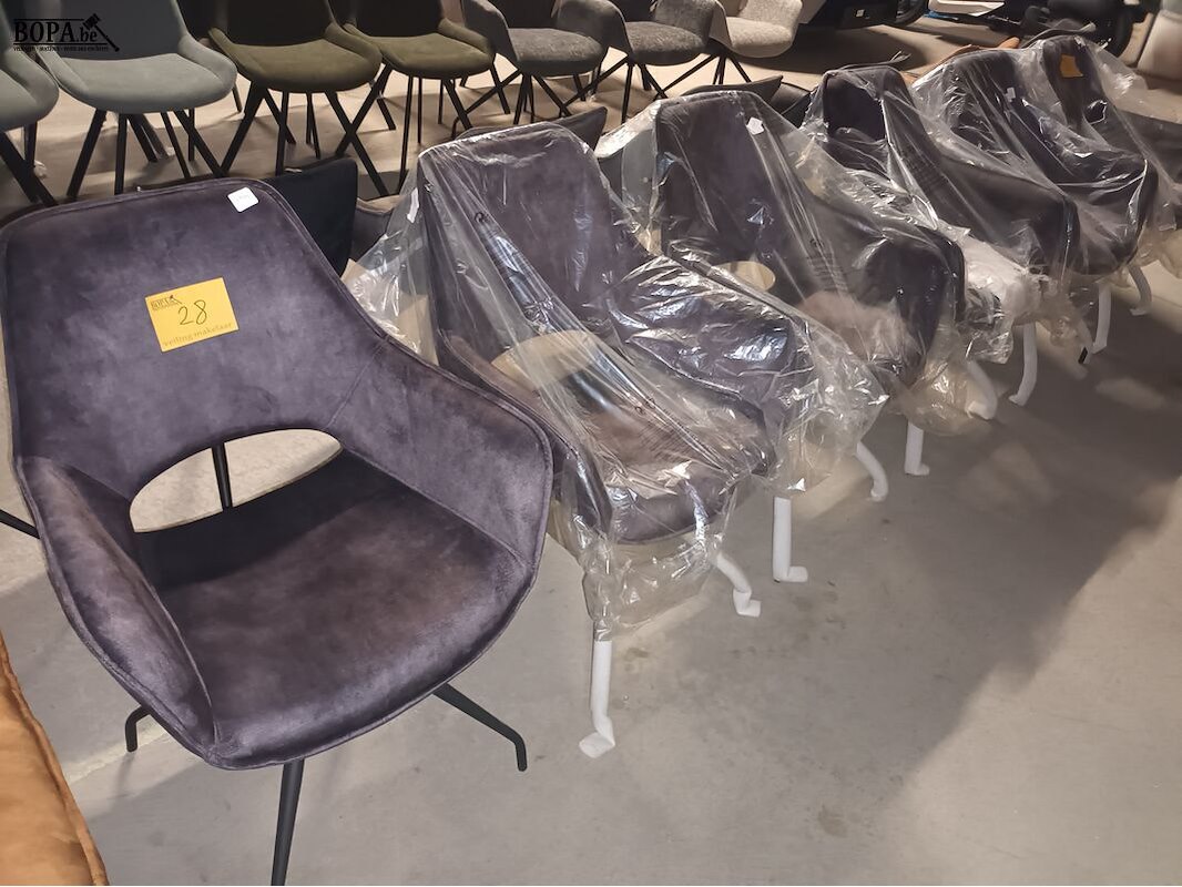 6 armstoelen met stoffen zitting. De stoelen roteren en draaien automatisch terug.