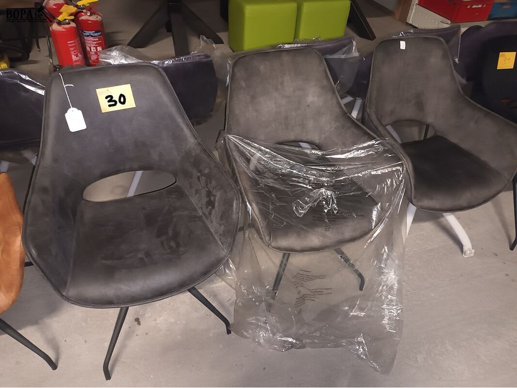 3 armstoelen Ned antraciet. De stoelen roteren en draaien automatisch terug.