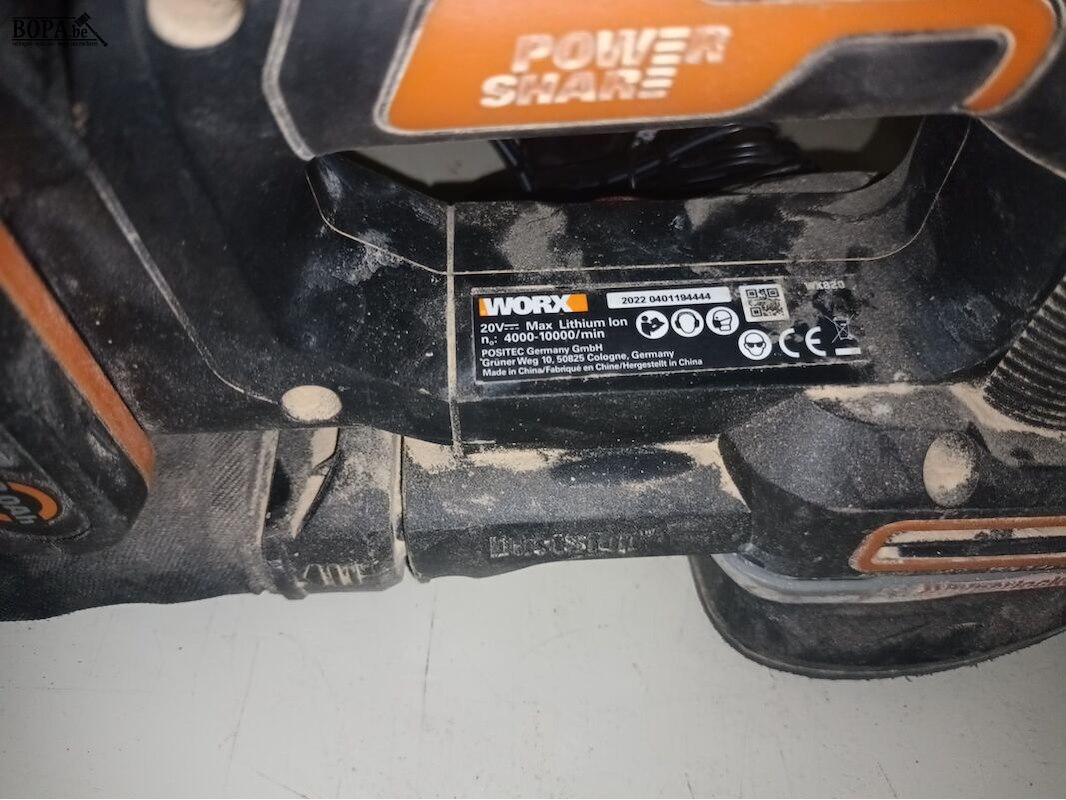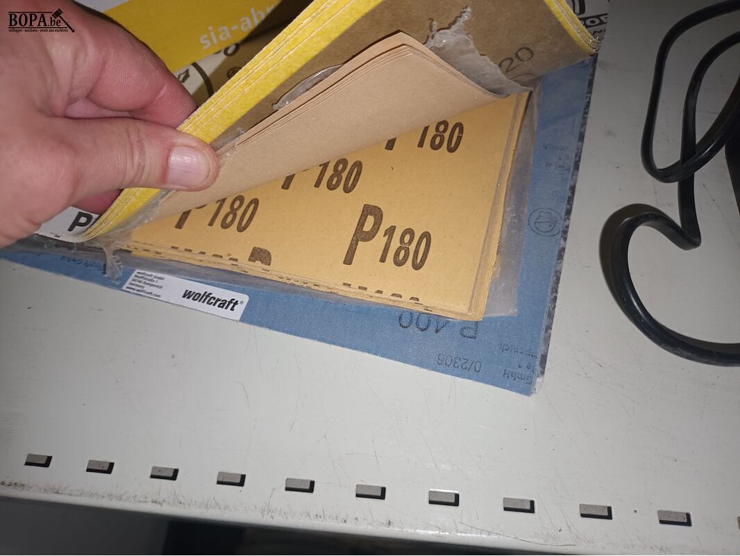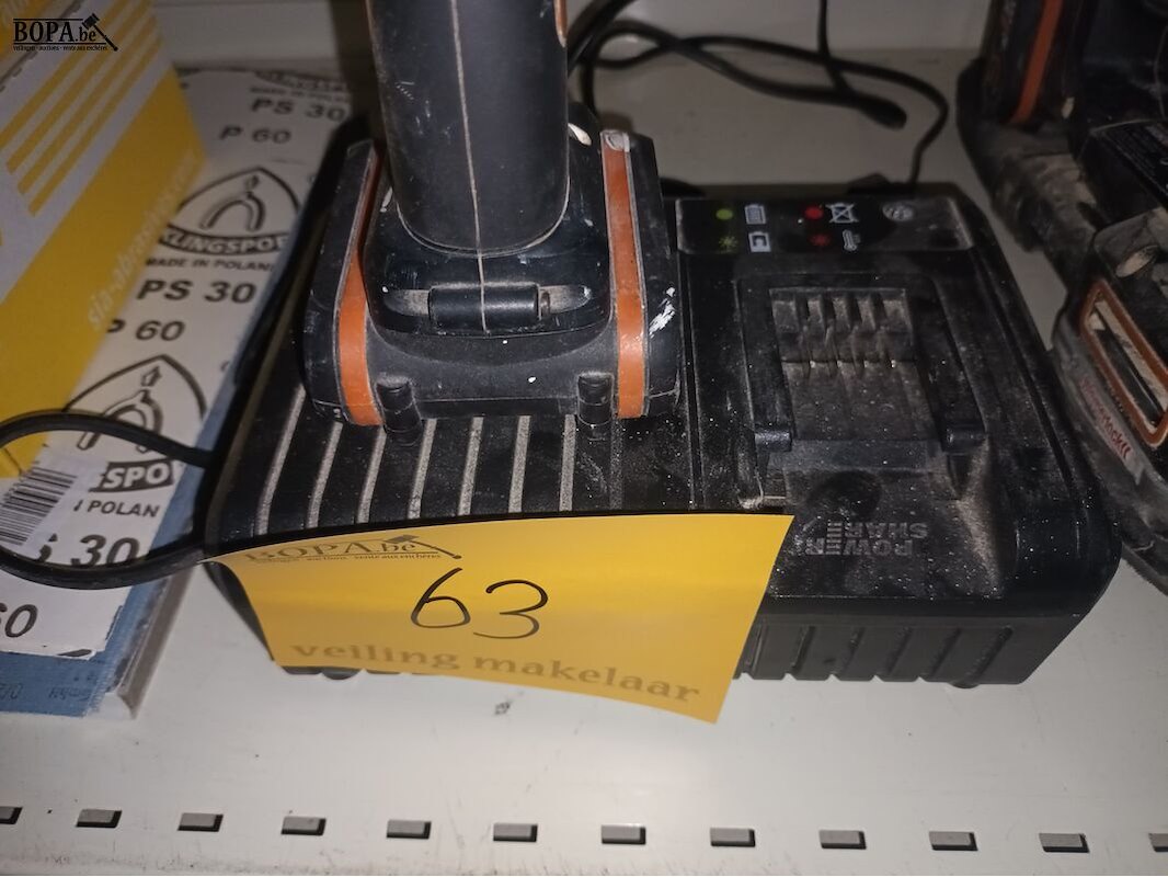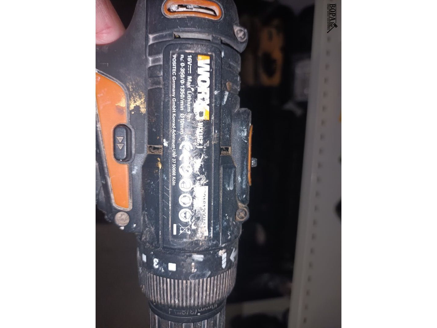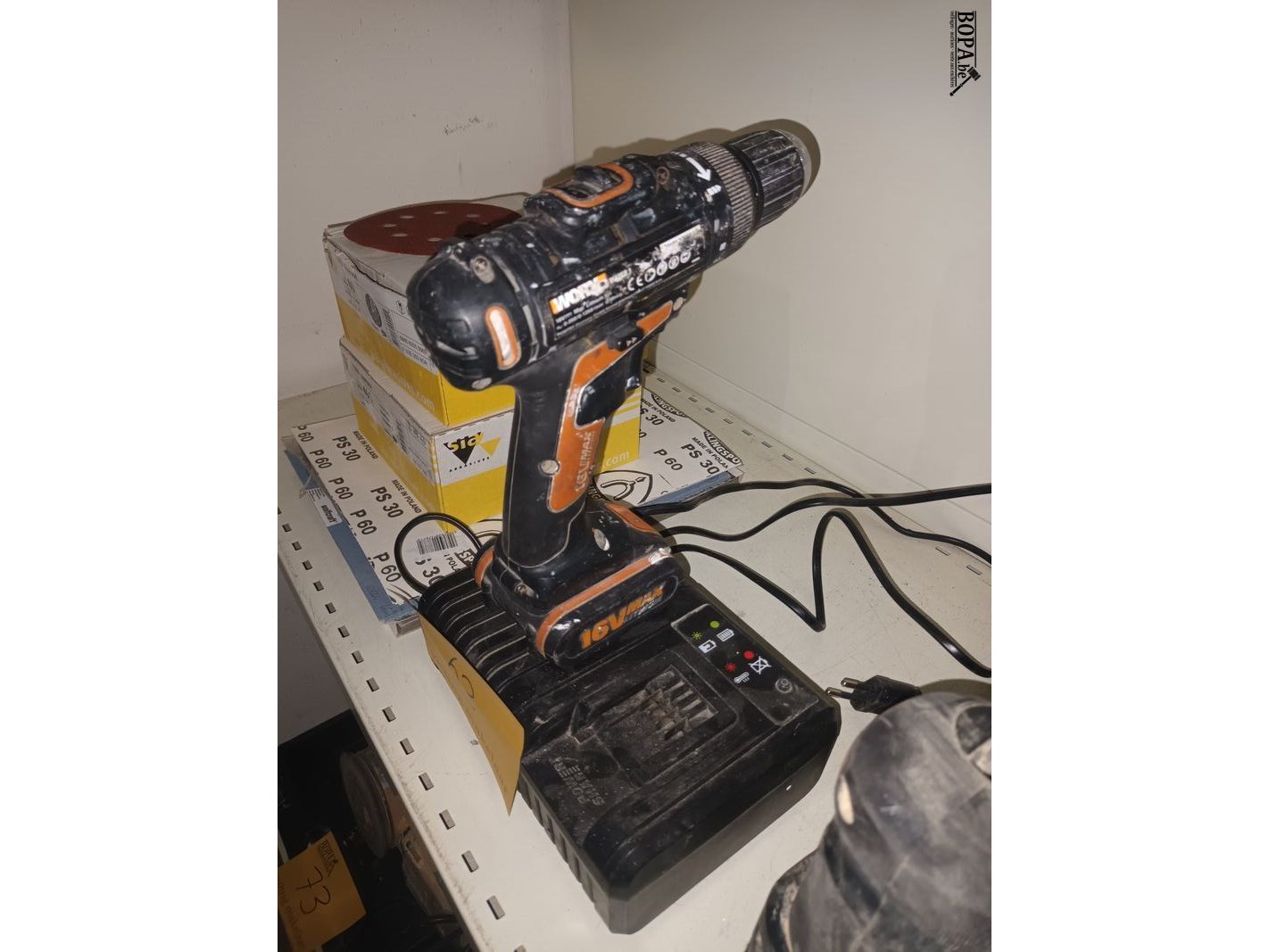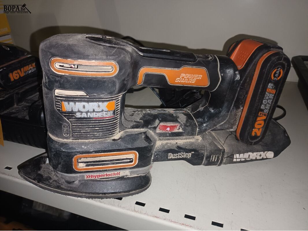 1 pak schuurpapier, 2 dozen ronde schuurvellen, 1 accu schuurmachine Worx met lader en accu en 1 accu schroevendraaier Worx met lader en accu.