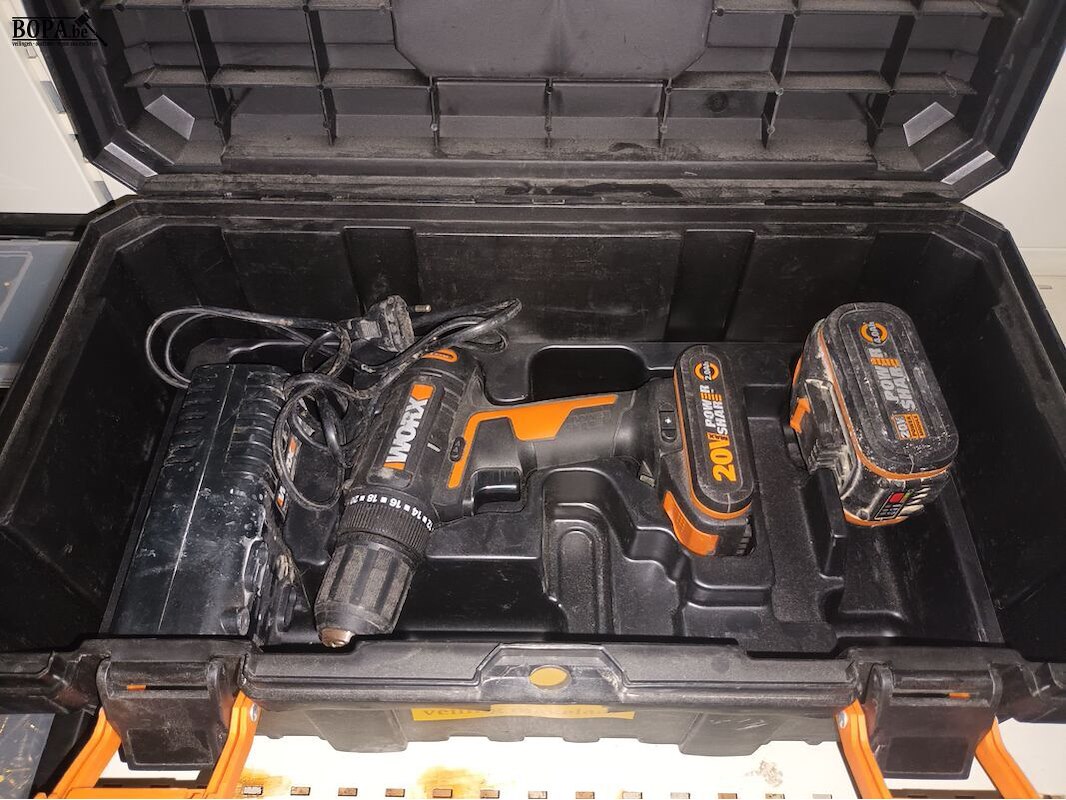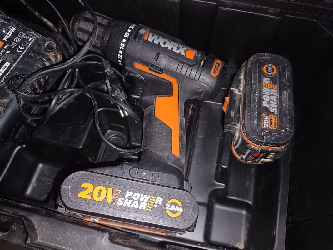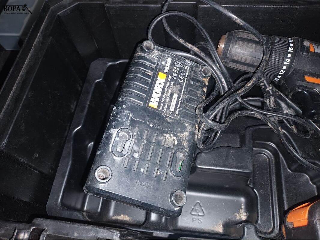 Accu schroevendraaier Worx in koffer met 2 accu’s en een lader.