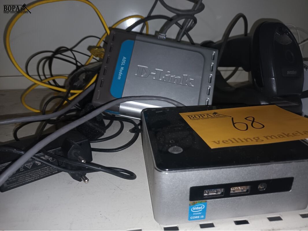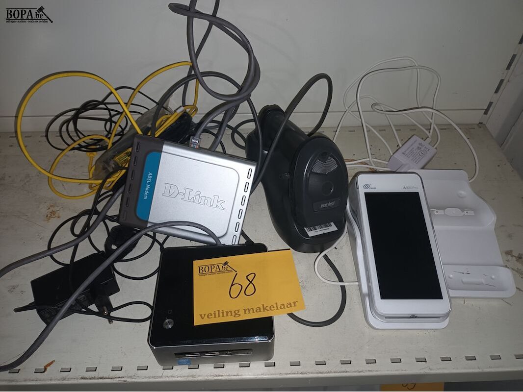 1 betaalterminal Opax A920Pro, 1 handscanner Symbol, 1 NUC intel en 1 ADSL modem D-Link.