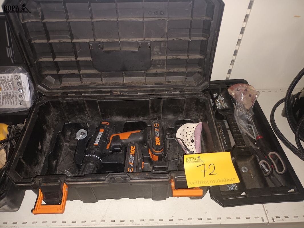 Accu schroefmachine Worx in koffer met lader en 2 accu’s.