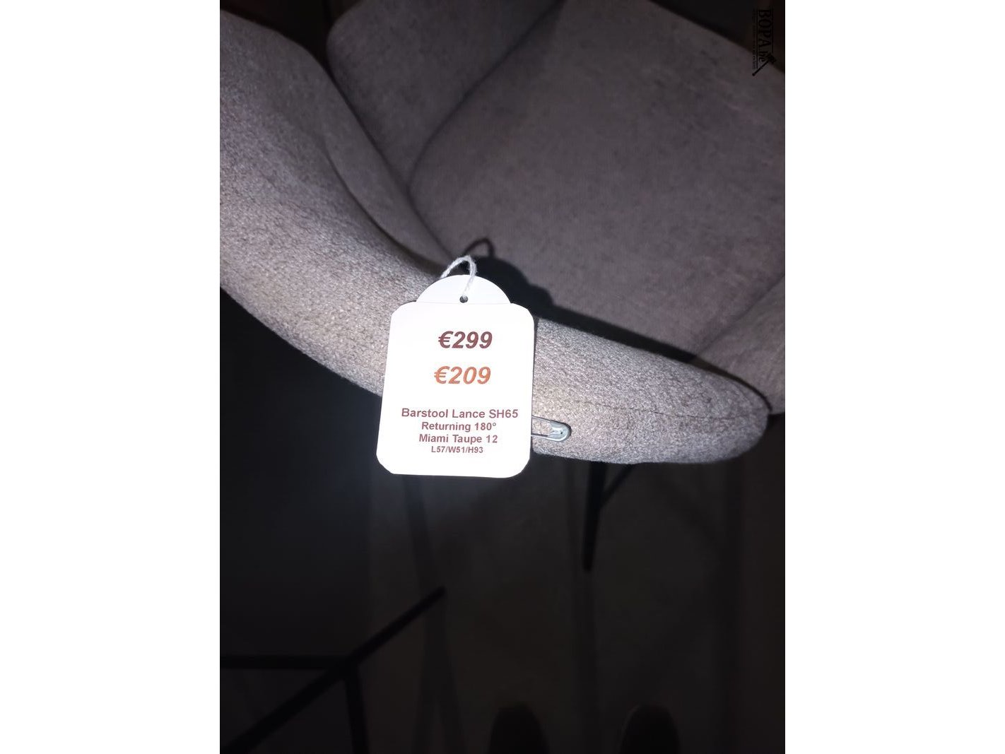 1 barkruk Amsterdam kleur zink en 1 roterende armbarkruk Lance kleur taupe.