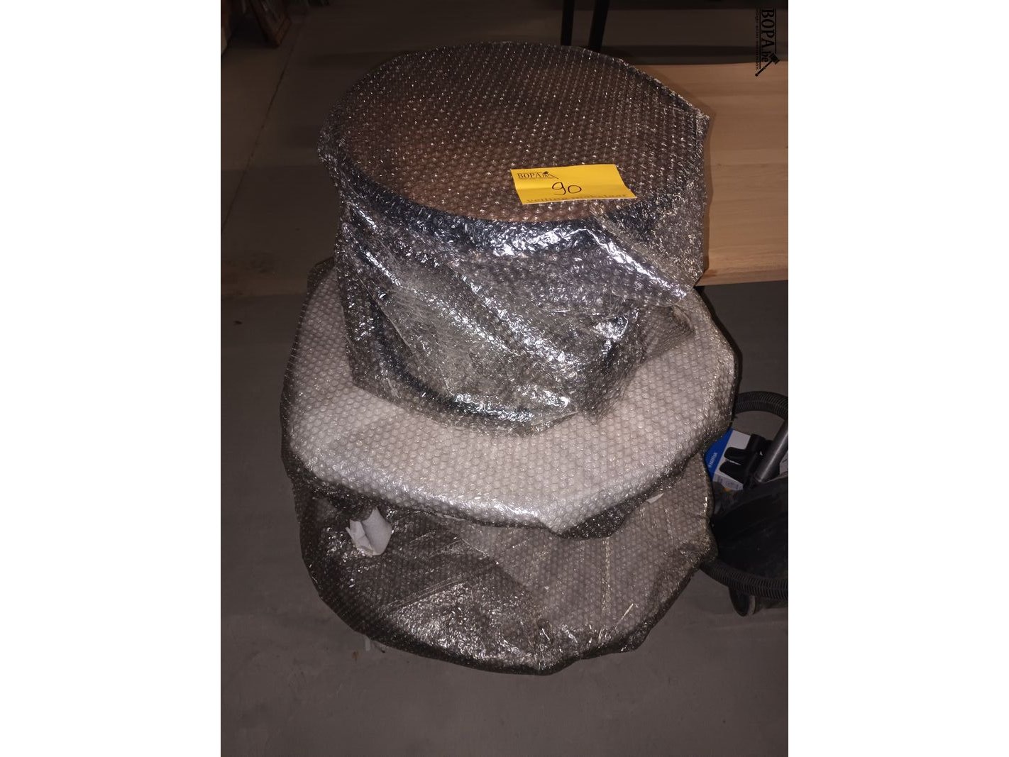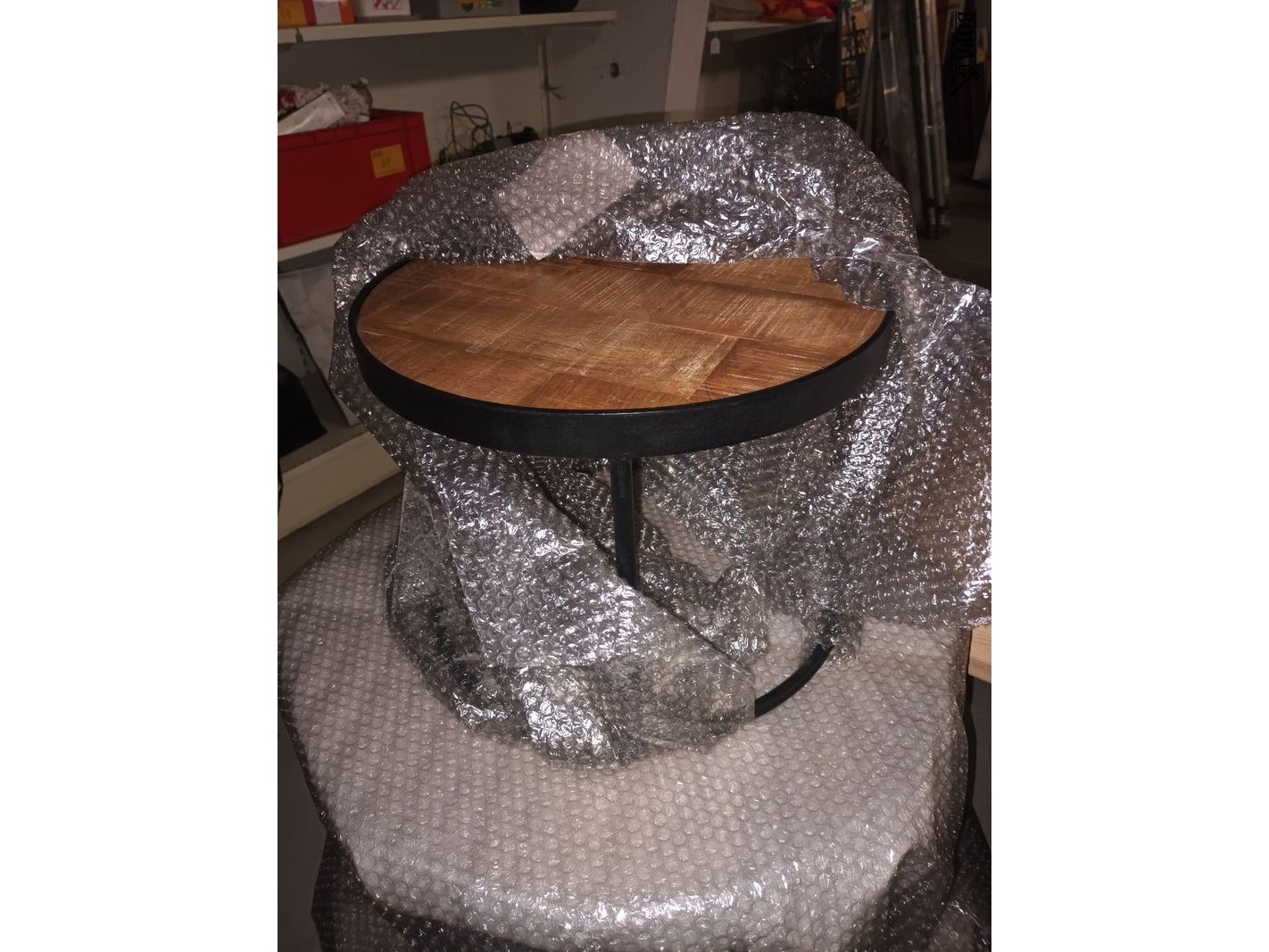 3 in elkaar passende bijzettafels. De grootste heeft een diameter van 75 cm en een hoogte van 47 cm.