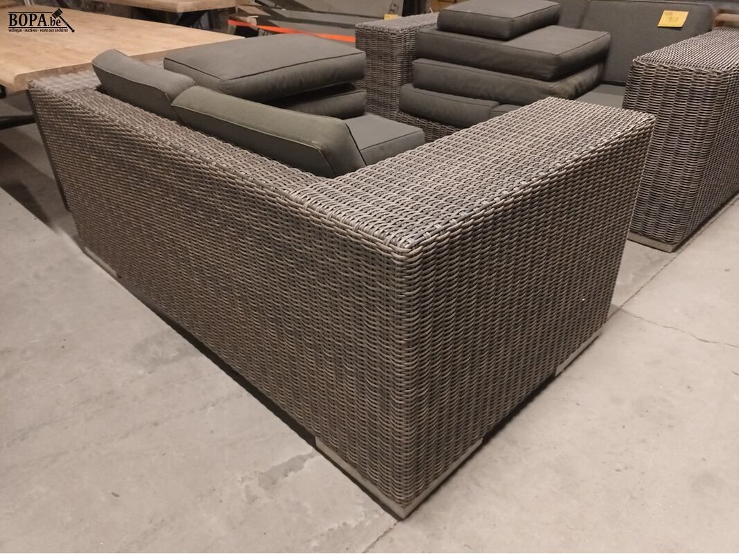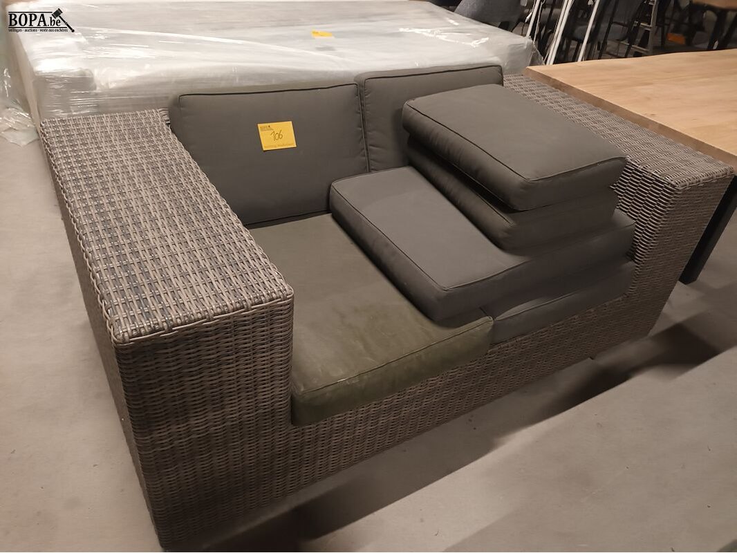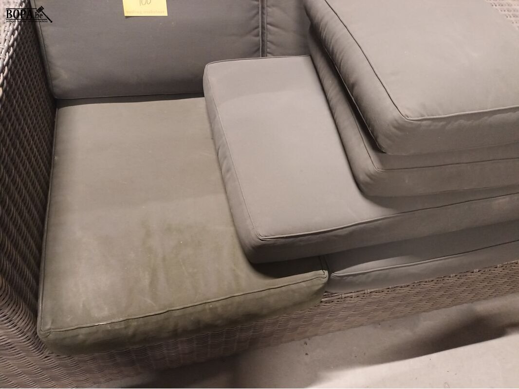 Wicker zetel met kussens. Kussens te reinigen. 180 x 95 x 70 cm.