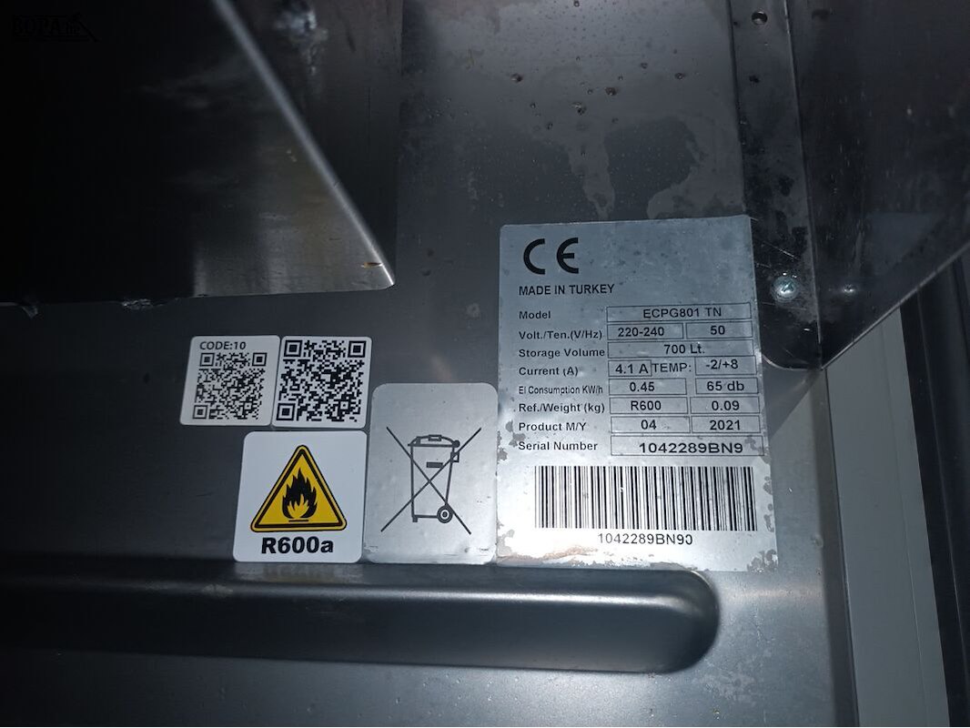 Topcold rvs 1-deurs koelkast model ECPG801 TN. 70 x 82 x 212 cm.
