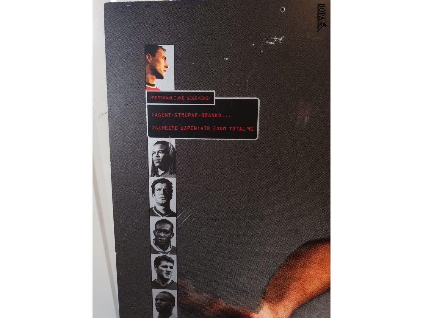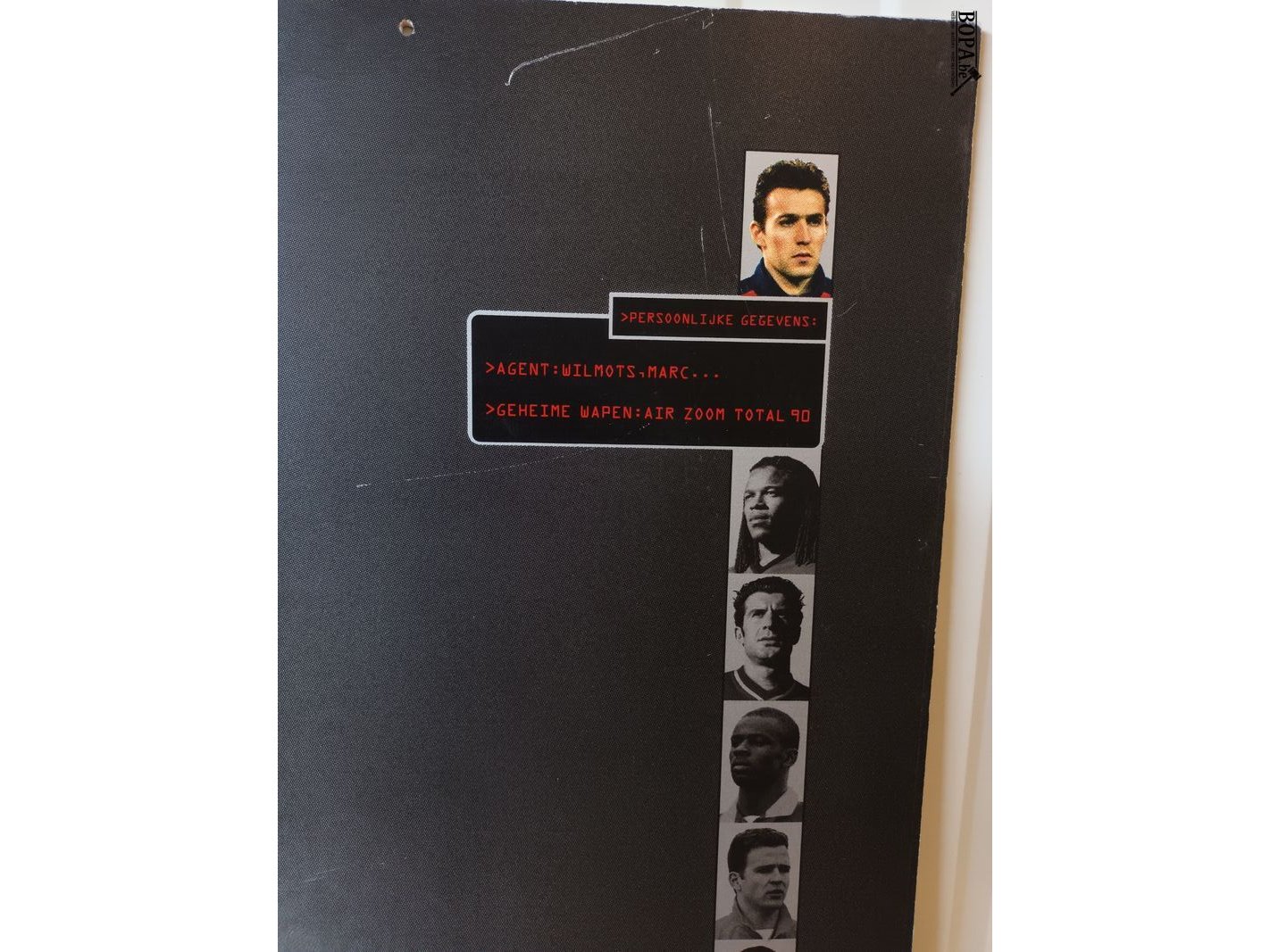 Nike voetbal bord met aan de ene kant Branko Strupar en aan de andere kant Marc Wilmots. 80X80cm. Dubbelzijdig.