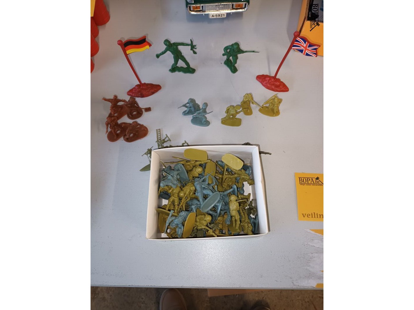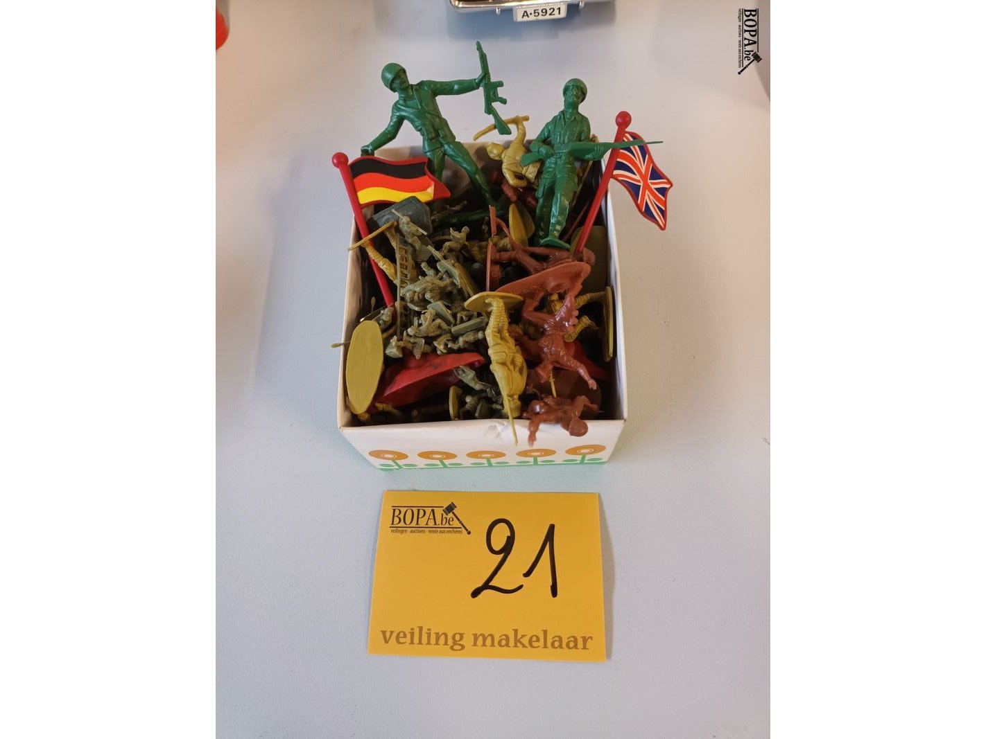 Soldaten en vlaggen in plastiek. Verschillende formaten.