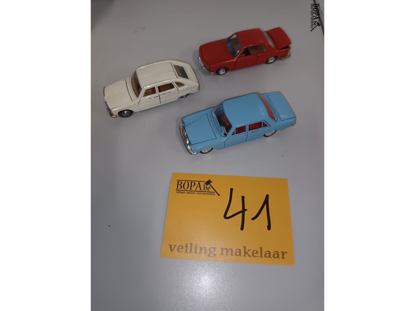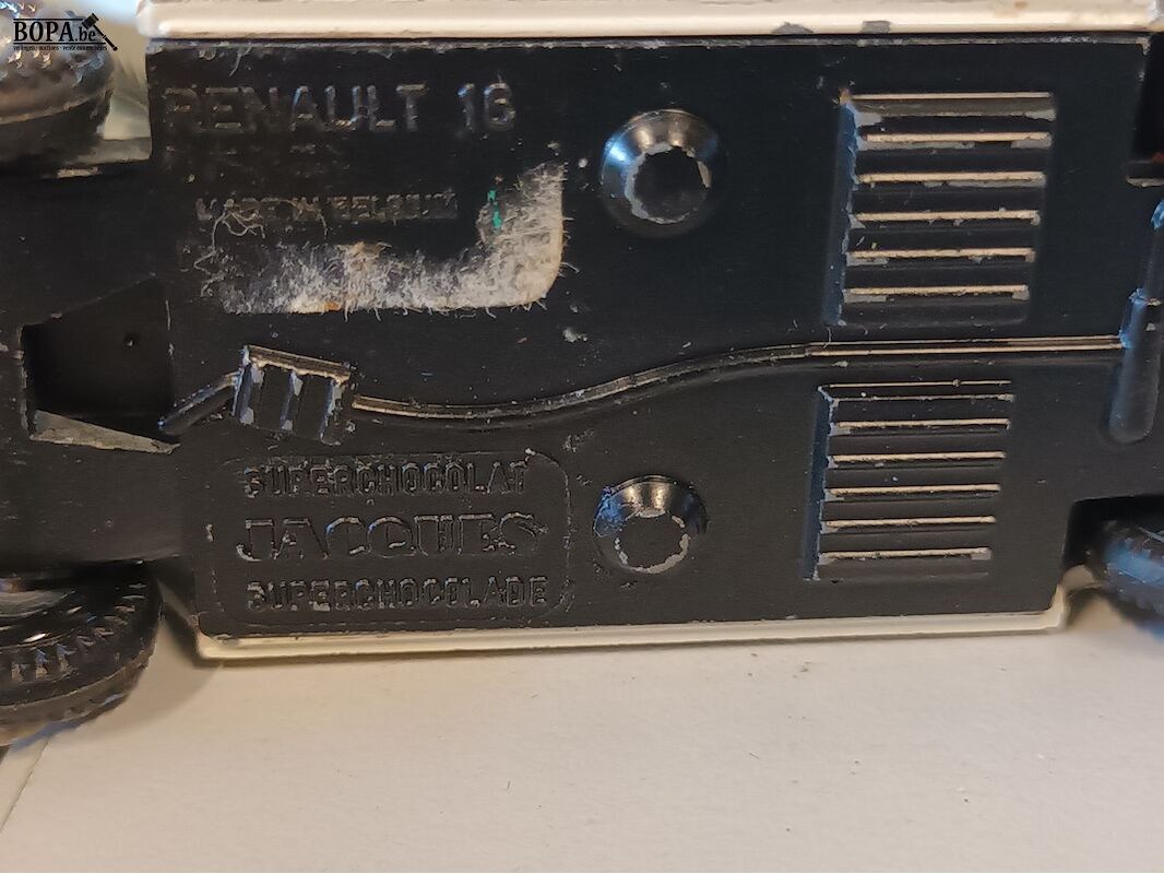 Vintage auto’s op schaal. 3 stuks. Made in Belgium. Superchocolat Jacques. Mercedes 200, Renault 16 en BMW 2000 CS.