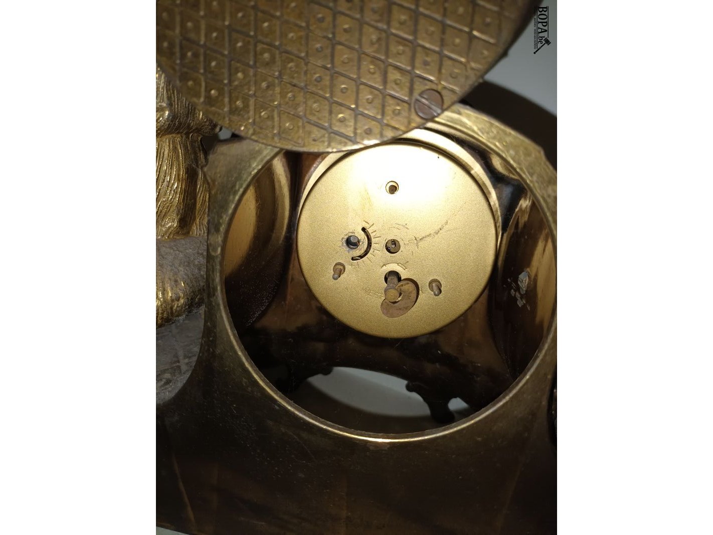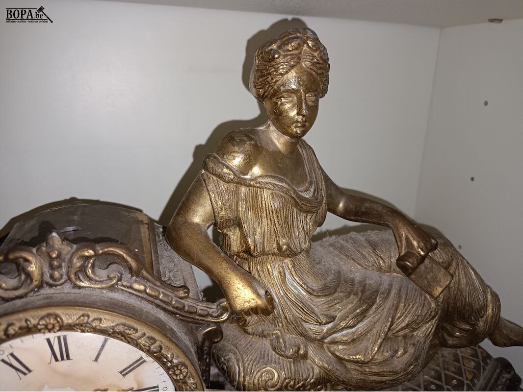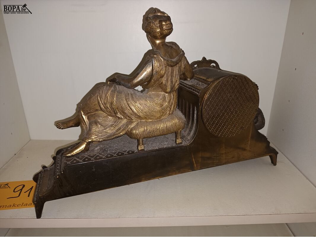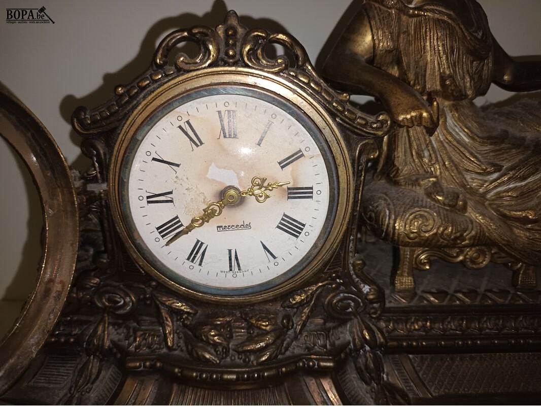 Messing mantelklok met Mercedes klok. 43X17x28cm.