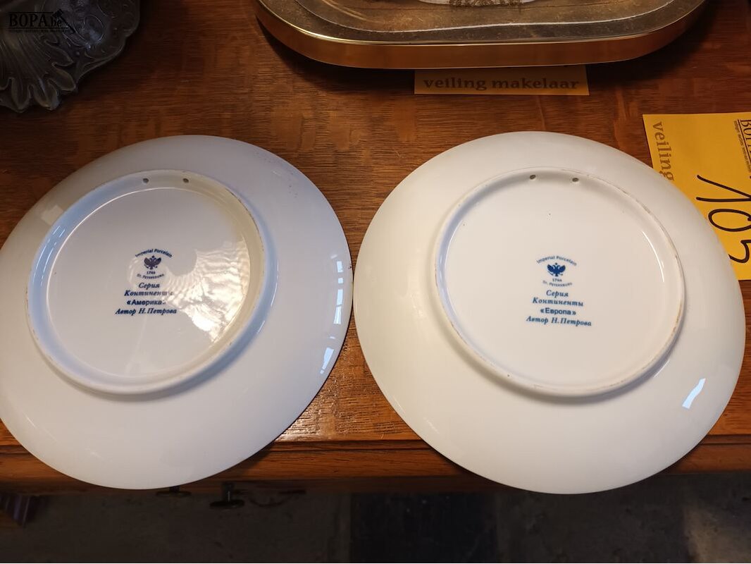 Russische sierborden paarden. 2 stuks. St. Petersburg. Diameter 20cm. Imperial Porcelain.