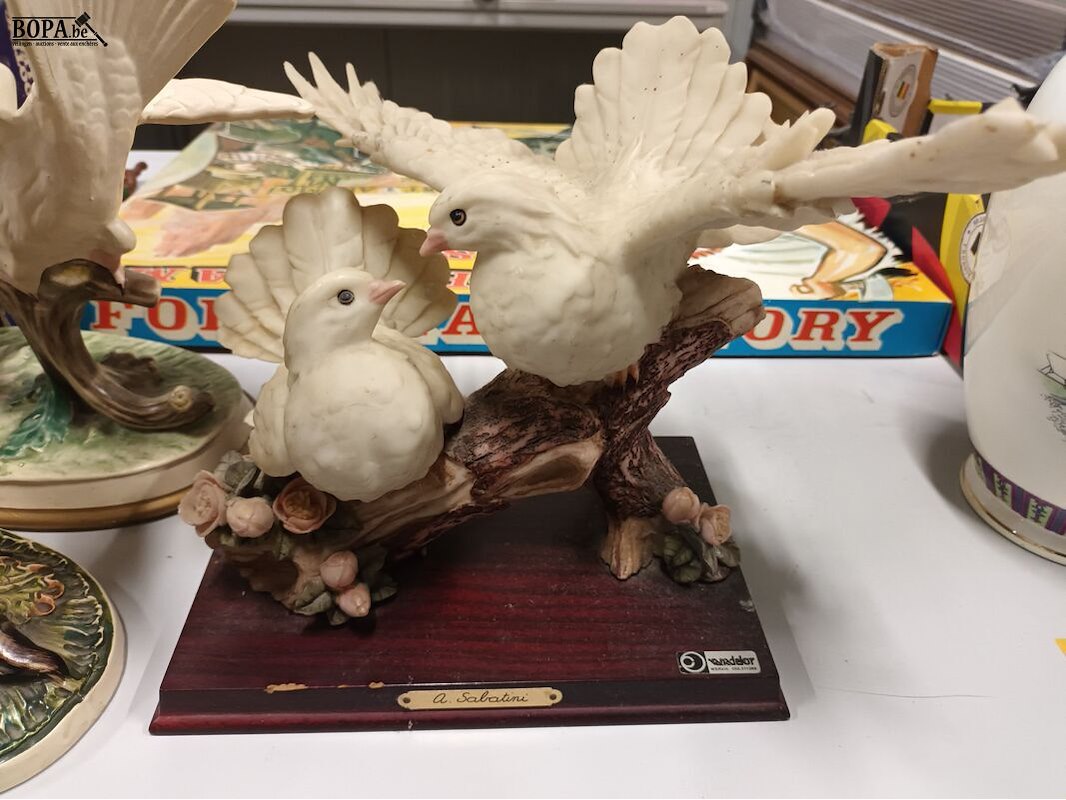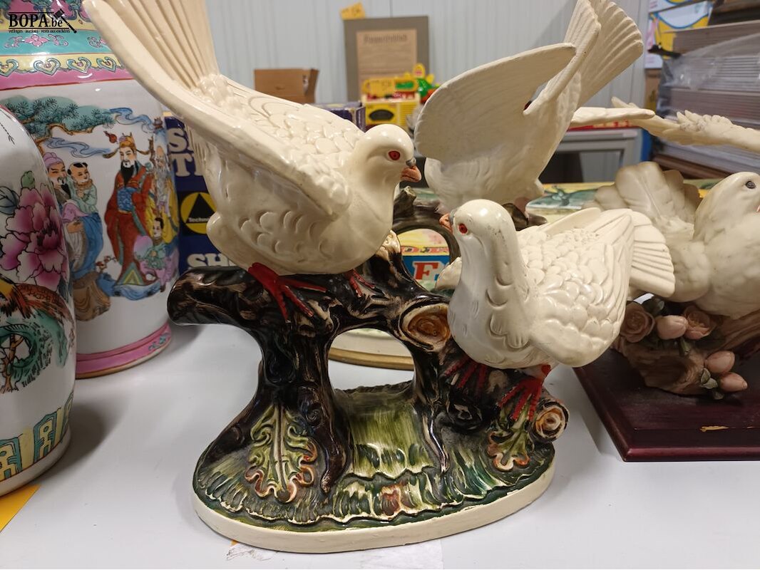 Biscuit beelden met tortelduiven. 3 stuks.