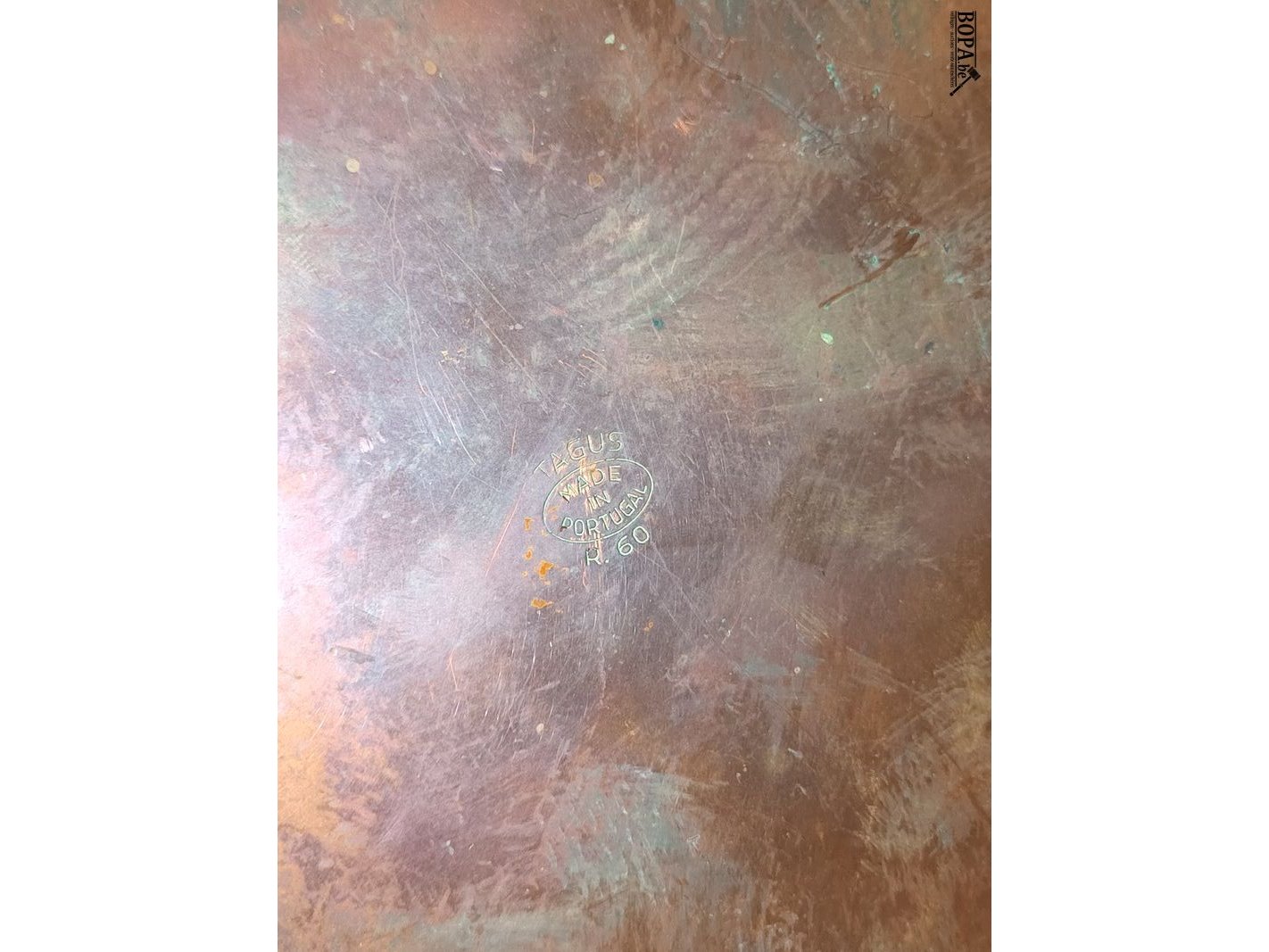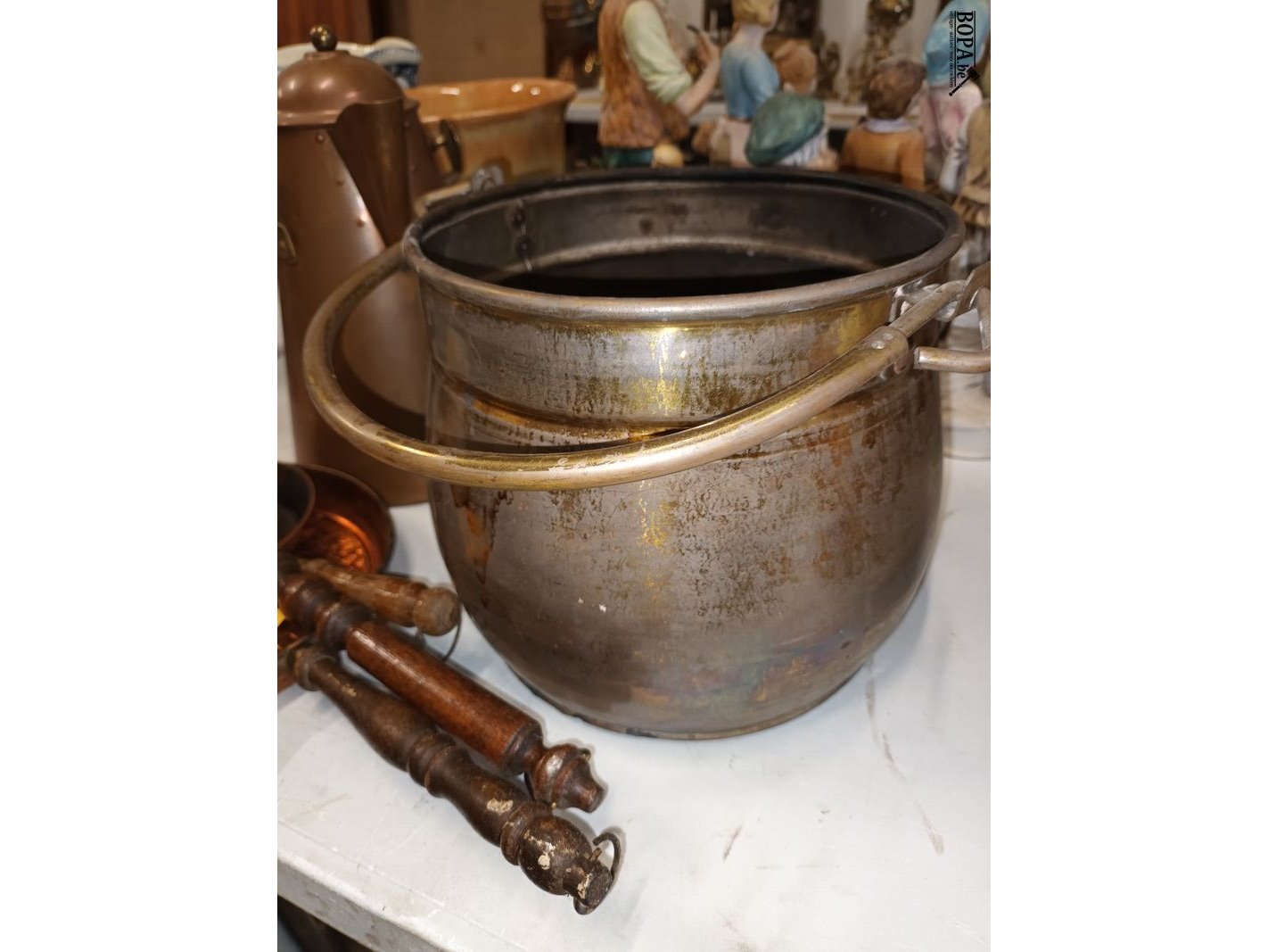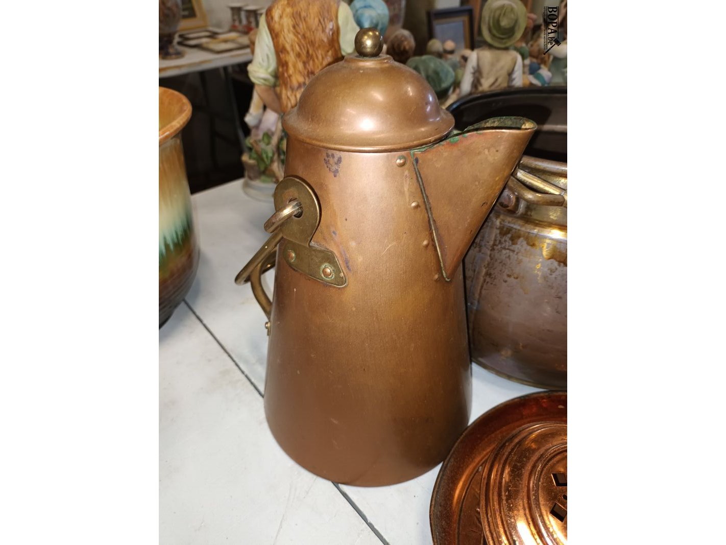 Koperen decoratie. 5 stuks. Ketel, kan en 3 pannen.