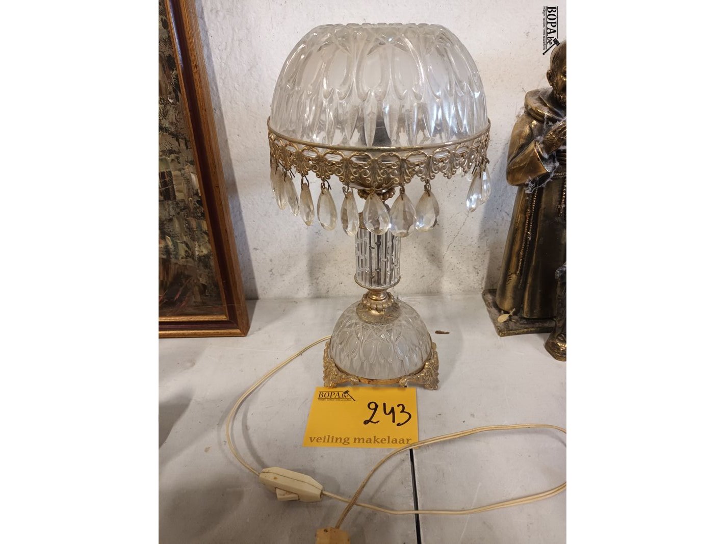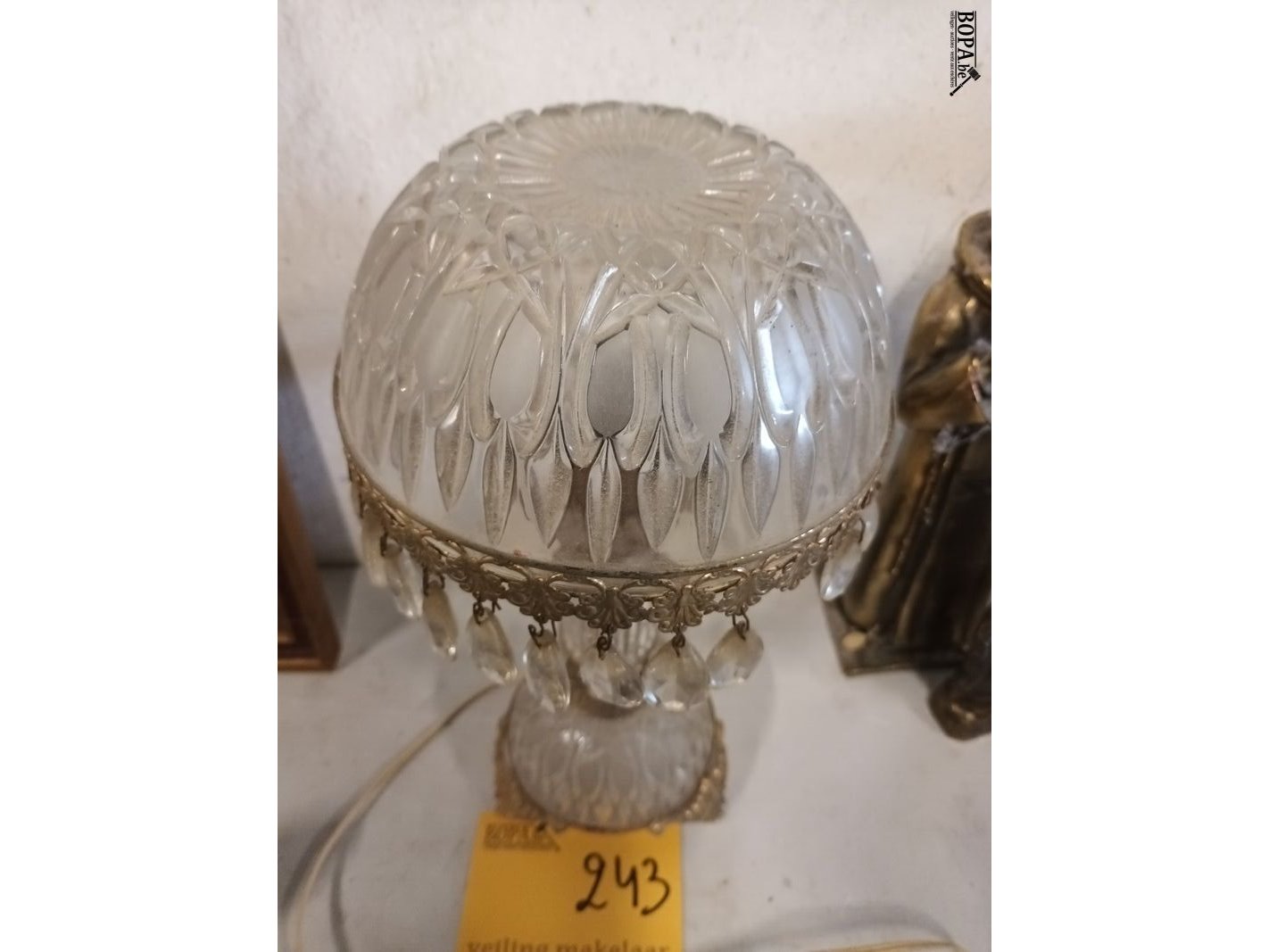 Lot 243 - tafellamp in glas en messing