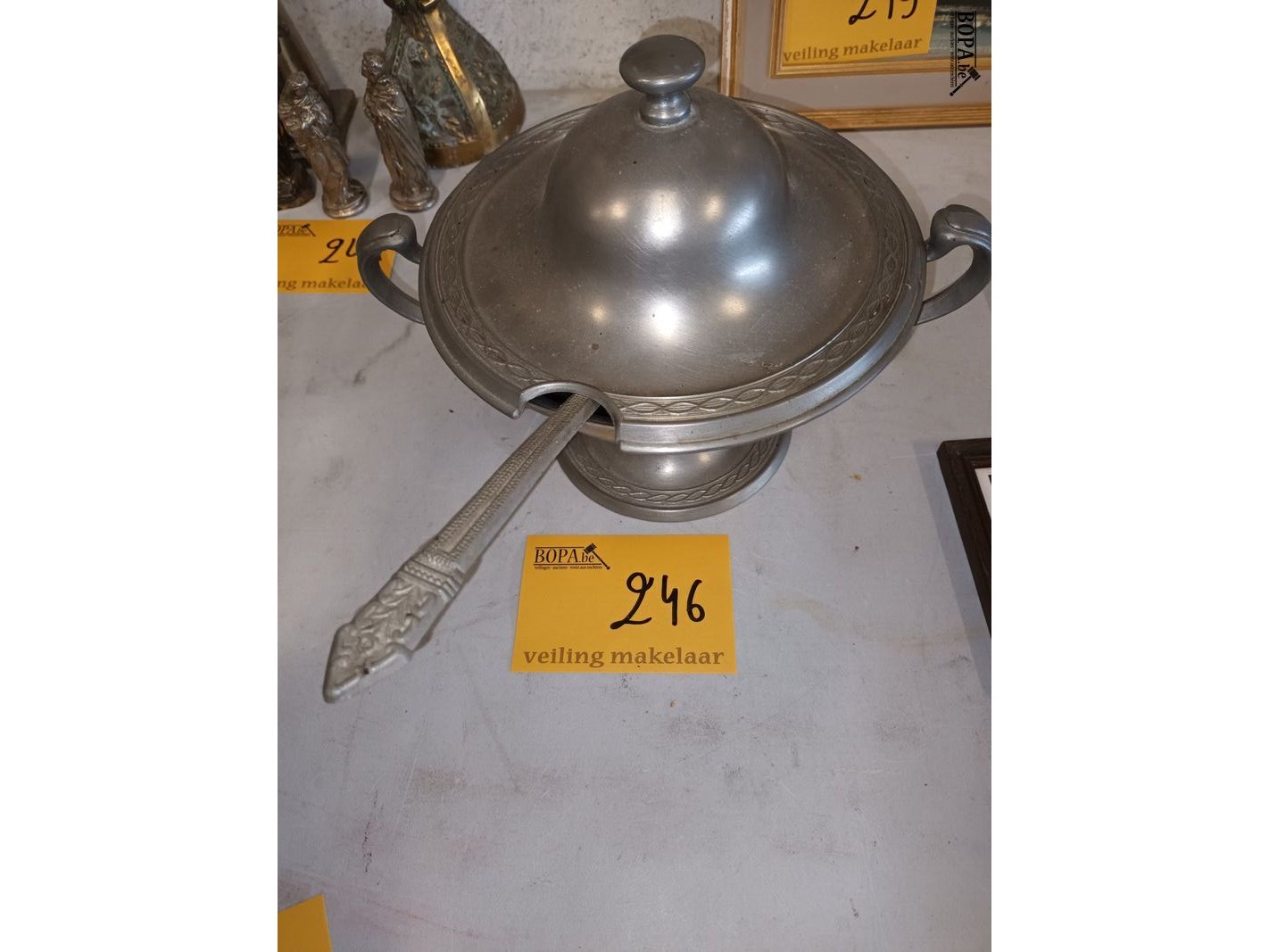 Soepterrine in tin. Diameter 20cm. H 21cm.